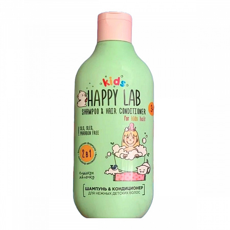 Happy Lab Kids Шампунь-кондиционер 2 в 1 для нежных детских волос / Cладкое яблочко, 300 мл