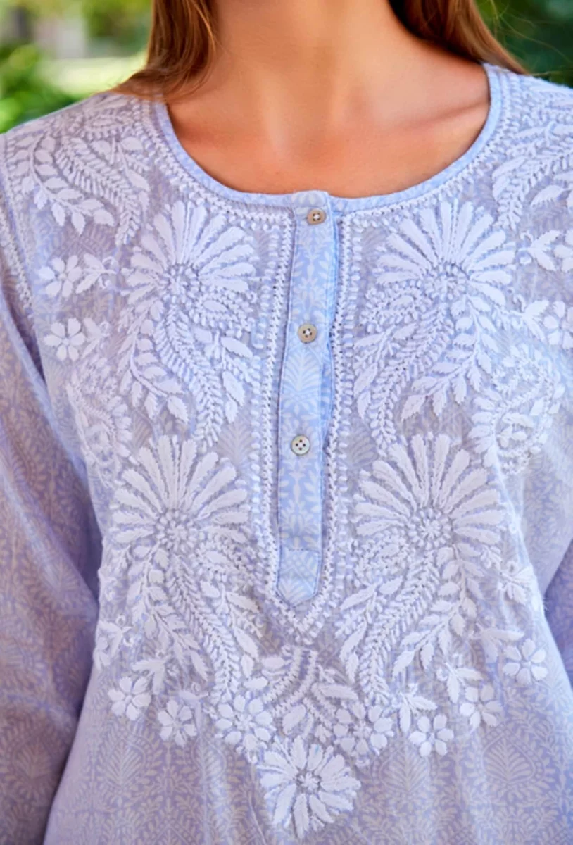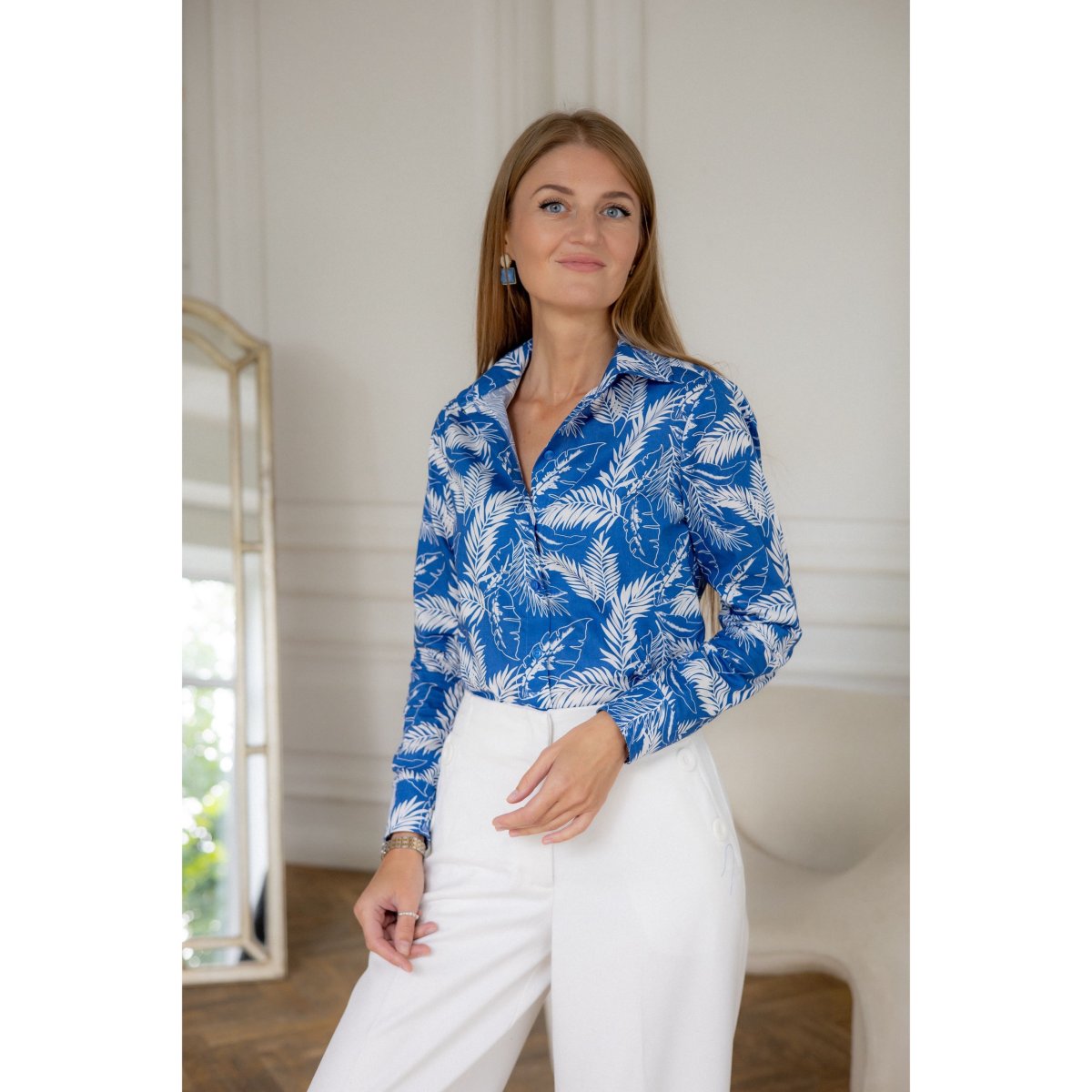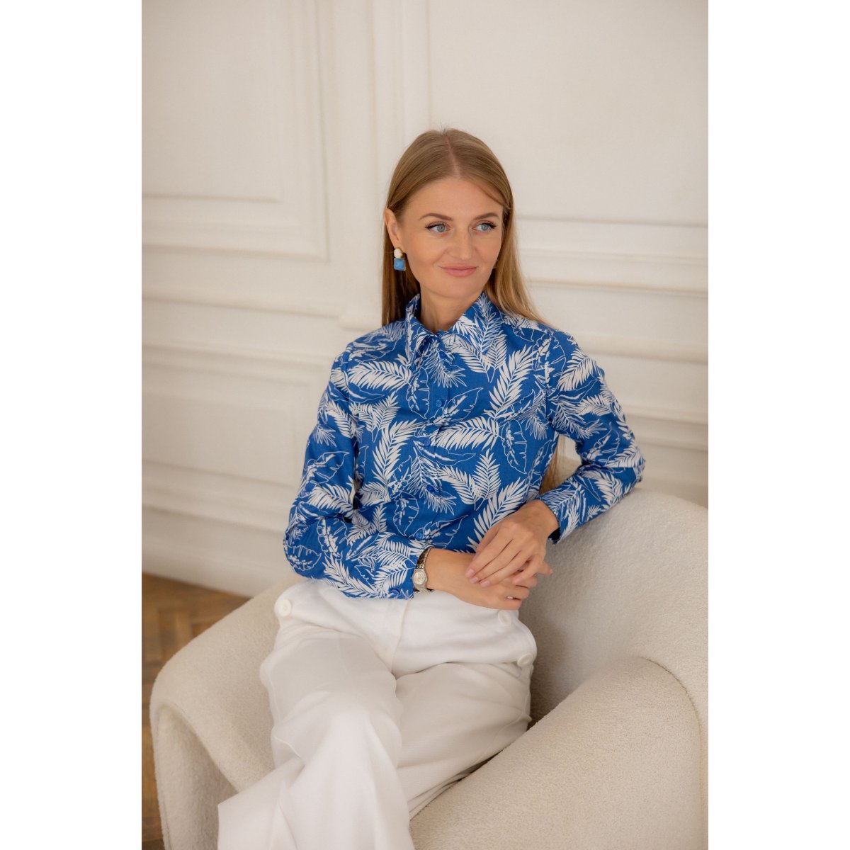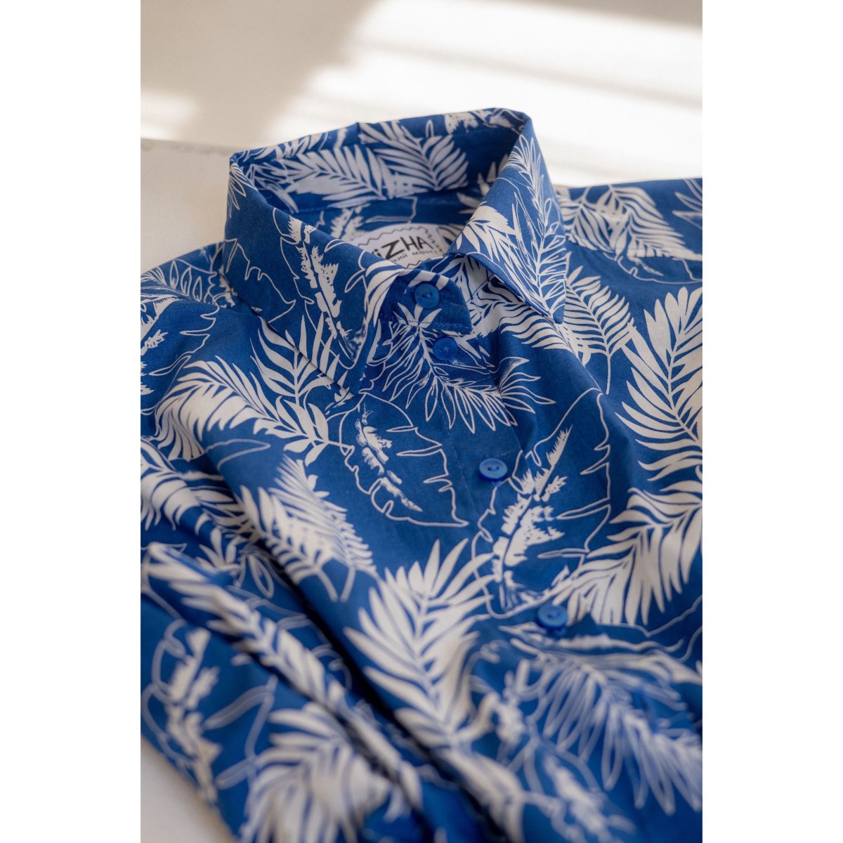 Рубашка «Белые листья на синем»