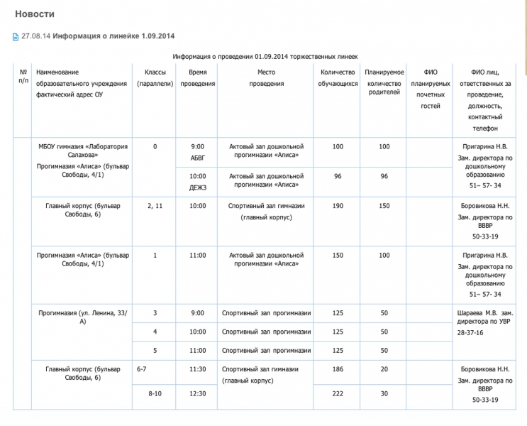 Информация о линейке 1 сентября, размещена на сайте http://sgls.admsurgut.ru/news/pg1/829/