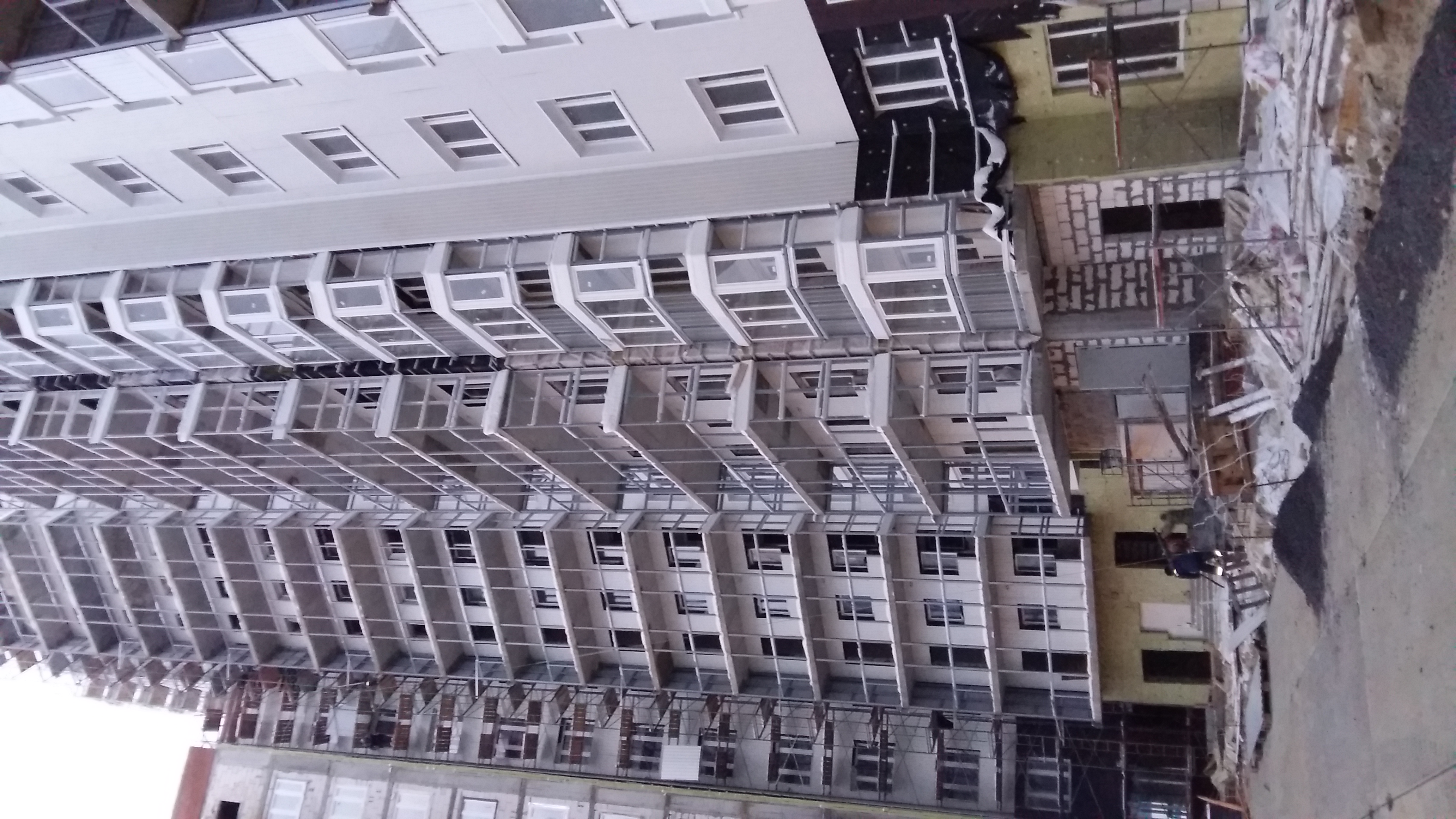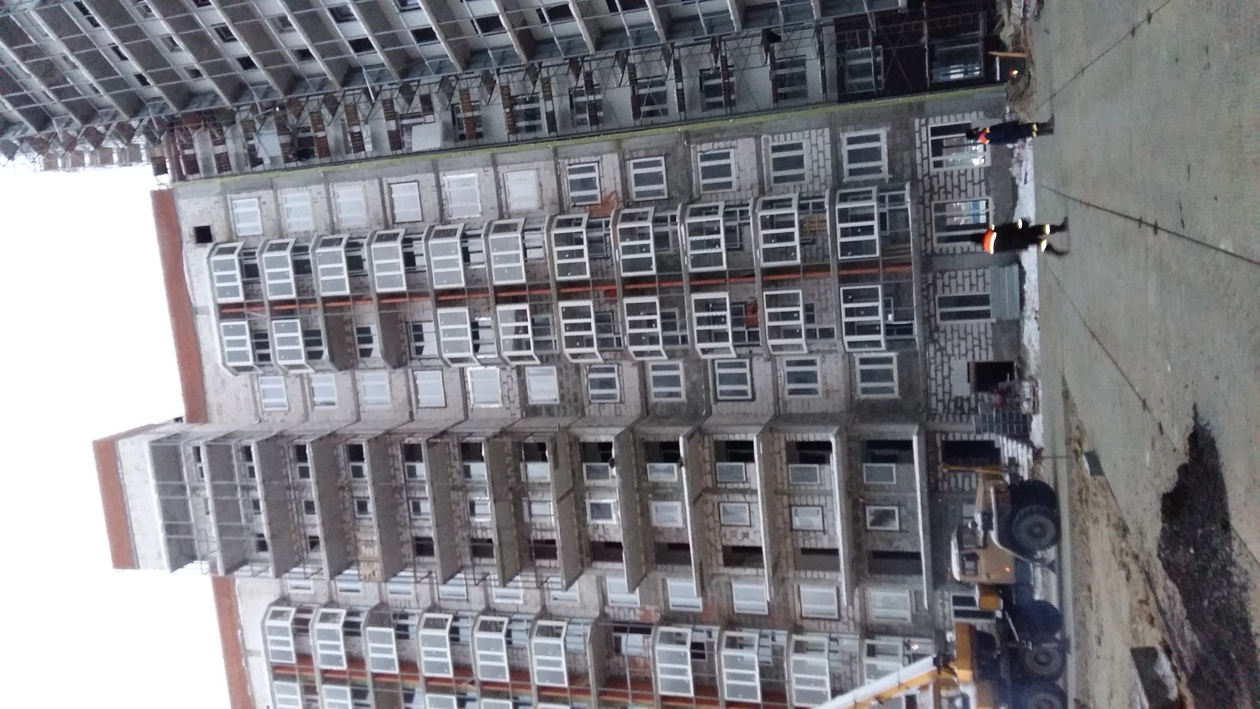 На стройке была в субботу. Уже частично положили плиты на внутреннюю территорию. Обшивают остальную часть здания. Работа кипит, строители трудятся. Сделала фото на память.