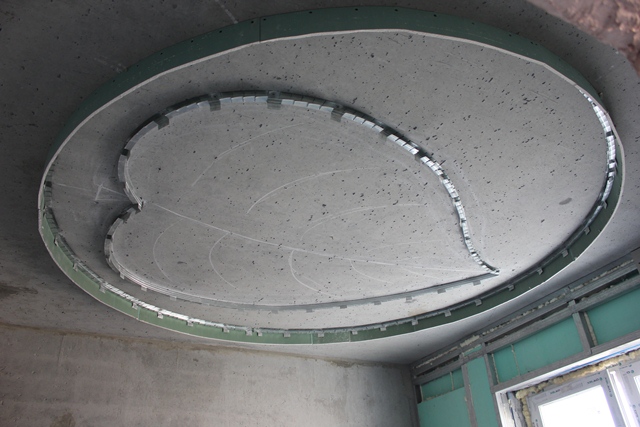 Потолок в небольшой нашей гостиной , ещё не до конца сделан