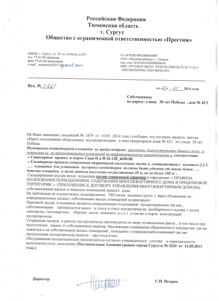 вот что нам ответили на заявление по поводу установки контейнеров!