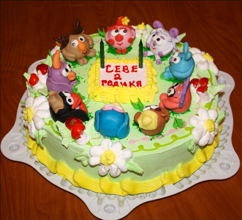 У нас был точно такой же торт со смешариками. Фигурки были оооочень жесткие, как камни((( Видно давненько заготовки смешариков были сделаны Торт съели, а фигурки так и выкинули. |