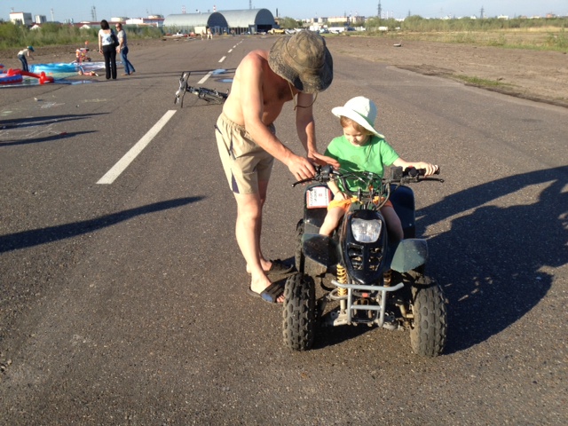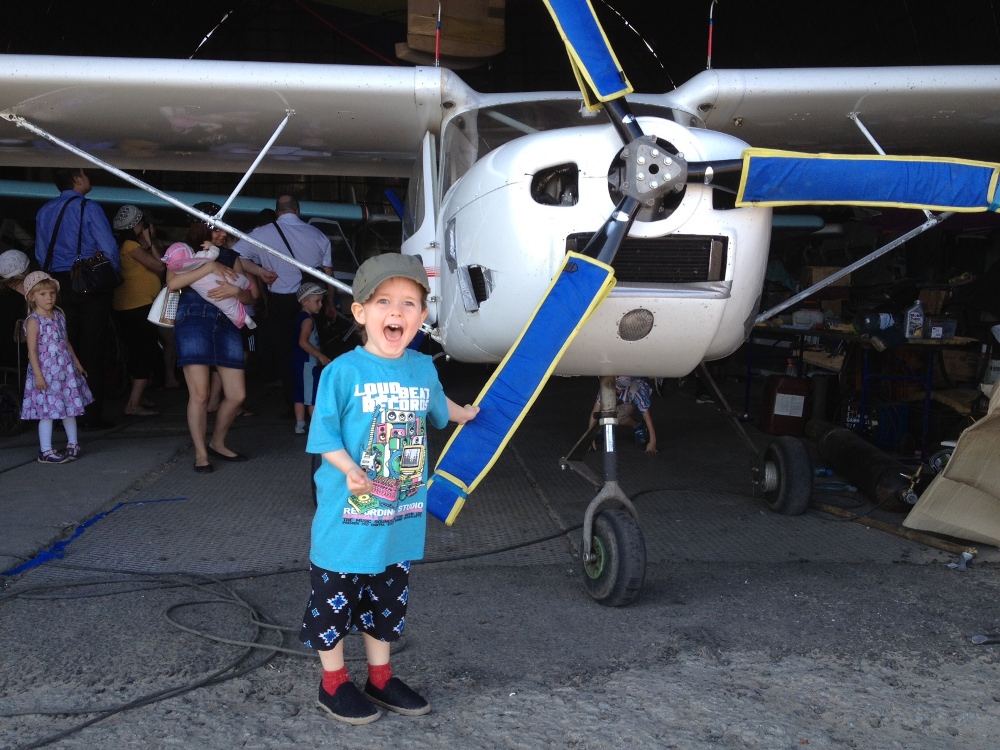 Девочки, спасибо, что познакомились с аэроклубом. Там конечно аниматоров нет, да и приелись они на каждом празднике, ну, и не к месту, я думаю. На фоне самолетов и прочей необычной техники было предложено запустить воздушных змеев, попускать огромные мыльные пузыри, надуть деткам шары, покататься на всевозможных детских видах транспорта, побрызгаться из водного пистолета (к сожалению, с пейнтболом не удалось договориться видимо). Вечером готовят палатку и караоке и обещали покатать на АЭРОХОДЕ (один из тех серьезных дядей как раз его водит): весело и безопасно. Так что если кому-то оттоптали ноги в городском парке, присоединяйтесь, еще не поздно!