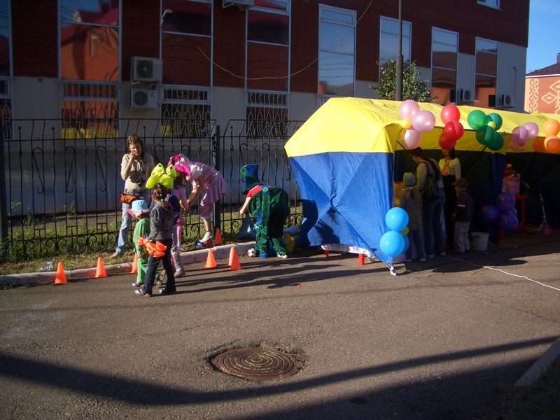 Недавно были на дне рождения племянницы.. Правда дело было на Большой земле, да и место проведения дня рождения позволяло разойтись.. двор очень удачный. Но может кому-то и пригодиться идея.