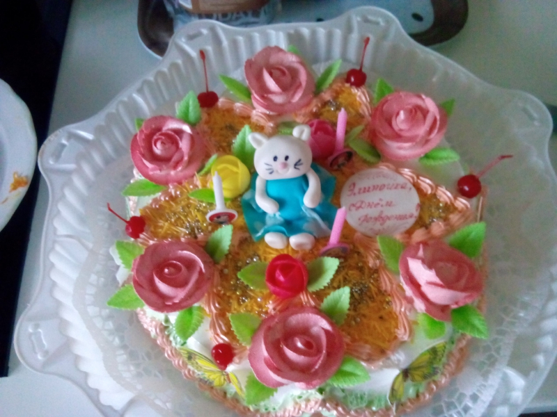 Вот и прошёл День Варенья моего пупсика. Заказала торт в "Золотом Ключике", как то не решилась заказывать у частников, торт понравился, и вкусный и красивый , правда фигурка Хелло Китти не удалась, но решила не расстраиваться из-за мелочей.