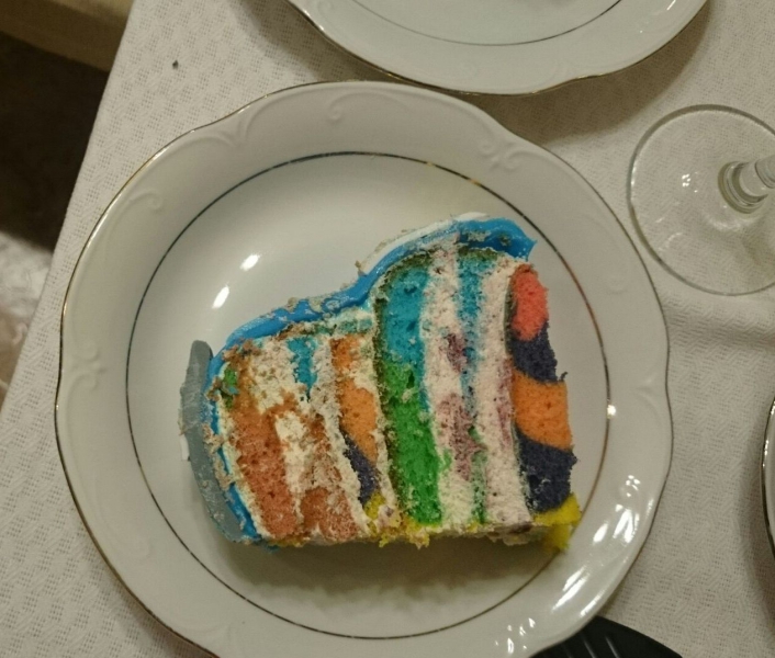 Мы заказывали в Чеховском торт в виде зеленой полянки из крема с цветами и феей, после поедания у всех губы и язык долгое время были зелеными, брррр