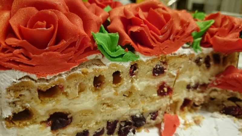 На будущее решила заказывать белые торты, со светлыми украшениями |