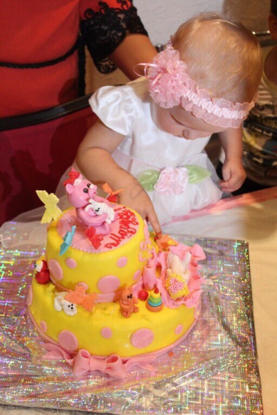 Жалко, что я ее не сфоткала в первозданном виде. А потом уже с другой стороны вставала к торту, чтобы ребенку фотографии не портить.
