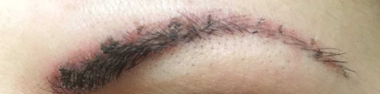 Я пыталась смягчить природную асимметрию, и в итоге от бровей мало что осталось. Куски. Выйти на улицу в таком виде было неуважением к окружающим. Фото после вообще неудачное, это вырезка из фото на котором я сплю