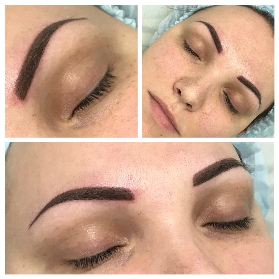 Шли изначально на микроблейдинг, но она сказала что кожа жирная и мне он не подойдет. Сделала татуаж в технике напыления