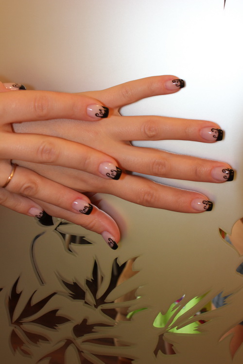 . Вчера сделала коррекцию ,теперь у меня чёрный френч .Чёрный мне даже больше нравится чем белый и в следующий раз наверное сделаю просто черный френч без всяких завитушек .
