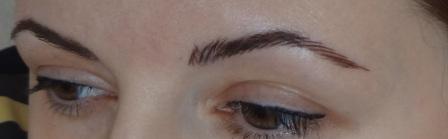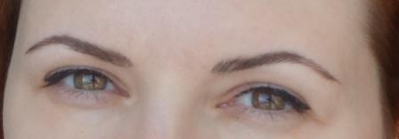 Через неделю корочки сошли и оказалось, что стрелочка очень аккуратная)) Отек у меня был страшный! И держался дня два! Хорошо, что в отпуске была... А брови вообще никаких неудобств не доставляли. На них я долго не могла решиться... Свои были хорошие, но проблемы с формой и кое-где заполнить нужно было. Мне казалось, что подправить это уже не получится, только если убирать "хвостики" и нарисовать заново. Но "нарисованные" брови я не хочу Ольга мне сначала нарисовала правильную форму, но с "хвостиками" выше моих... Я отказалась. Тогда она сделала то, что видно на фото. Мне очень понравилось! Ничего удалять не пришлось! Теперь хочу еще нижнее веко чуть-чуть подчеркнуть...