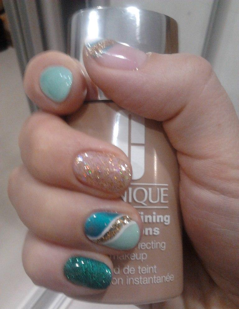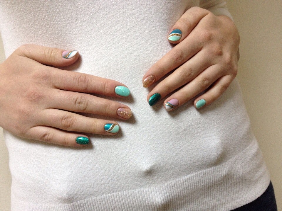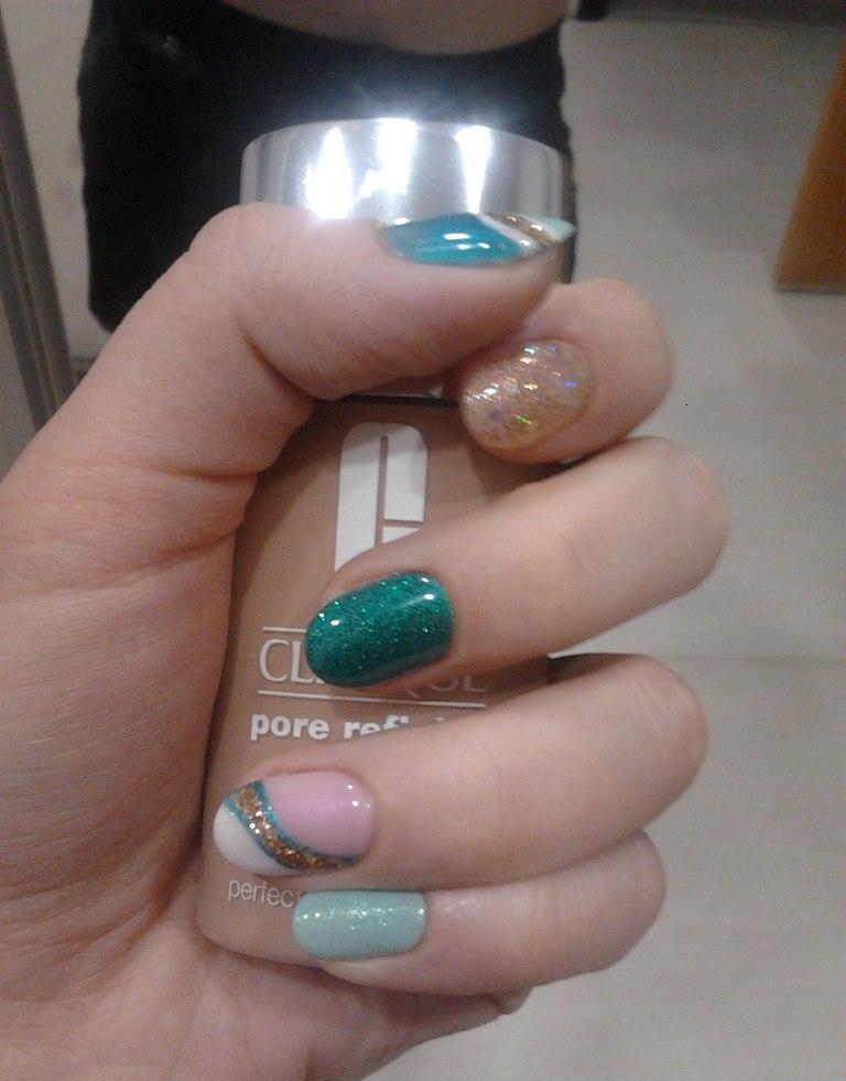 Мне очень понравилось, делает аккуратно, кутикулу убирает сначала специальным гелем, потом только подрезает где надо, оценивайте работу, это все шеллак + блестки, мои подруги уже записались к ней ![]()