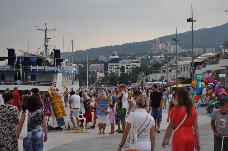 Набережная Ялты с сезон!Народу на самом деле не так уж и много)