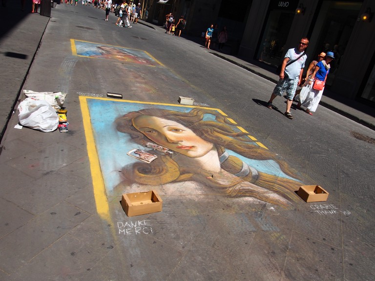 Утешились осмотром флорентийского Дуомо – собора Санта Мария дель Фьоре, и Баптистерия. Вечером гуляла по магазинам, сыну модные кроссовки купила, себе –перчатки, Флоренция славится перчаточным производством. Зашла в Farmacia di Santa Maria Novella. Это не аптека, а парфюмерное производство и магазин, очень хорошие кремы, тоники и пр. из натуральных ингредиентов. Цены сопоставимы с ведущими косметическими марками. Купила свекрови в подарок дневной и ночной крем. Вечер завершили тальятелле в сливочном соусе с бокалом отличного тосканского вина. Вложение: Творчество уличных художников во Флоренции... Если не ошибусь, фрагмент "Рождения Венеры" Боттичелли...