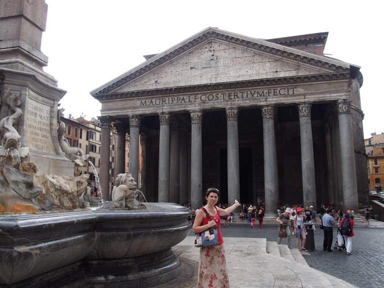 Пошли через мост Св. Ангела на пьяцца Навона – к фонтану Четырех рек. И тут начал накрапывать дождь. Быстрей побежали к Пантеону – хоть и дырявая, но все-таки крыша, и вход свободный. Вложение: Пантеон