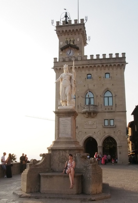 22 августа. Переехали в Римини, Hotel Gabbiano. Номер в отеле крошечный и какой-то очень казенный – мне все время казалось, что я не то в больнице, не то в офисе. Но зато первая линия от моря и приличный завтрак, что для Италии, говорят, редкость. Даже рисовали на кофейной пенке смешные рисунки – то с рожицей принесут, то с рыбкой. Мелочь, а приятно, и настроение поднимается. Жена хозяина с Украины, так что объясниться там не проблема. Посоветовала нам хозяйка ресторанчик – на отшибе возле автостоянки, совсем не туристический. Но как там кормили…Мои строццапретти с раком и цуккини в томатном соусе были хороши, но паста, заказанная мужем, с тунцом и рыбным соусом карбонара – это вообще был нереальный шедевр! Мы потом все три дня в Римини туда ходили. На следующий день валялись на пляже, а после обеда поехали в Сан-Марино – всего 22 км. от Римини. Город-государство на скале поражает изобилием красивых видов и красивых товаров. Особенно велик выбор оригинальной бижутерии и изделий из полудрагоценных камней.