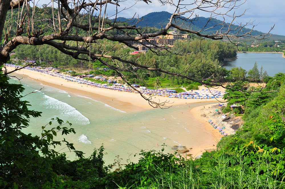 Это вид с мыса на пляж Най Харн, прелесть его в том, что рядом есть еще озеро, его немного видно на фото, а по середине озера стоит парк с детской площадкой, детей за уши было не вытащить с этой площадки. В парке постоянно проходили какие-то интересные мероприятия, праздники, так что мы оказывались в гуще событий.