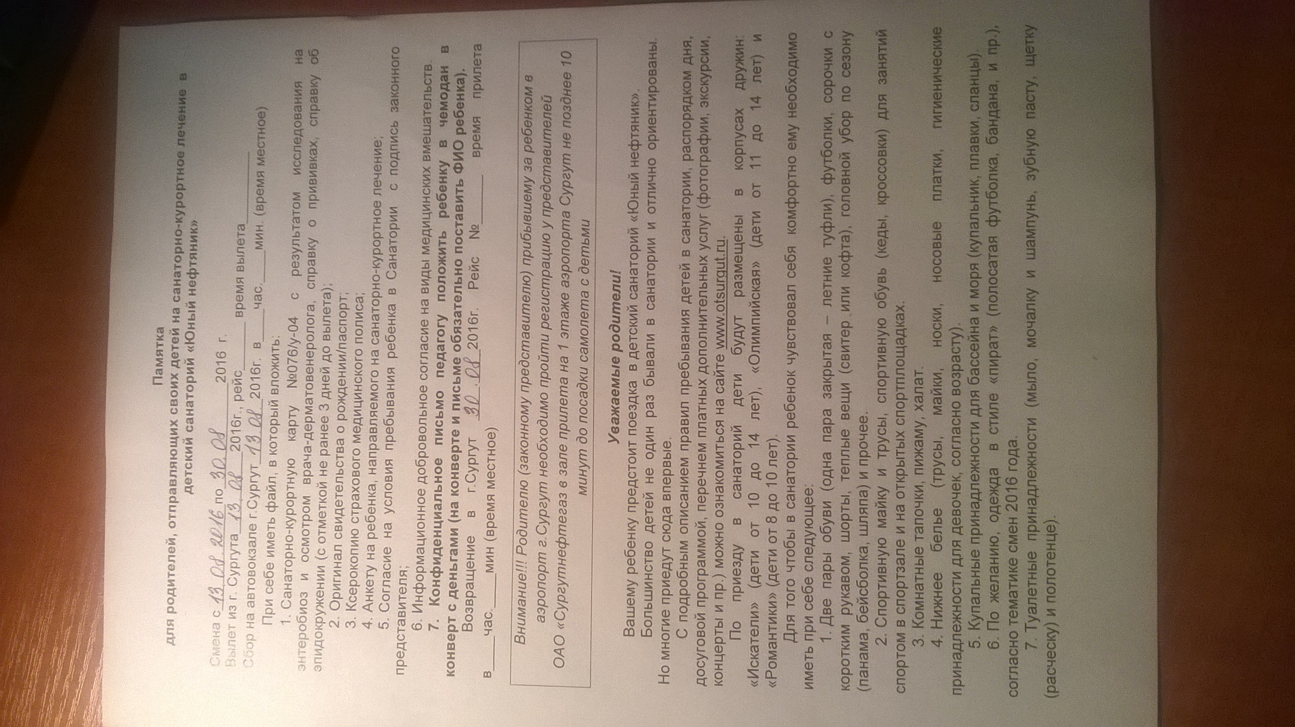 _ЮЛЯ_ писал(а): : 1.04.2016 19:24 Мы сына отправили в ЮН прошлым летом. Планов таких не было, но на работе у мужа появилась"горящая путевка". Думать времени не было. В четверг предложили путевку,в воскресенье вылет. За 3 дня сделали сан-курортную карту.(пришкольный лагерь работал до конца июня, друзья,одноклассники разъехались ,болтался на улице, а больше времени проводил за компом,поэтому вопрос о поездке в лагерь решился сразу) Организация поездки отработана у сотрудников СНГ на 5, от начала до конца.( везде автобусы сопровождают патрули ДПС и собст.служба безопасности) У сына отряд назывался Романтики, самые младшие дети. Комната на 4 пацанов . Питание отличное( у ребенка атоп.дерматит),с утра лечение,после сна - море. Вечером танцульки. Вывозили детей в аквапарк, дельфинарий. Мы сына забирали из лагеря сами.Пока у них был обед мы успели с мужем побродить по территории,пообщаться с воспитателями и вожатыми. Скажу честно,мы были в восторге от всего. Все в головных уборах,чистые, у девочек волосы прибраны. Ни одной испорченной вещи после стирки. Очень надеюсь что в этом году путевку нам дадут. Сын с января бредит поездкой. ![]() Юля, а можно вопросы еще в личку по поводу лагеря вам задать? Тут нет отдельной темы по лагерю Юный нефтяник, а я первый раз отправляю сына ( ему 12 лет и я не знаю с кем поговорить на эту тему...)
