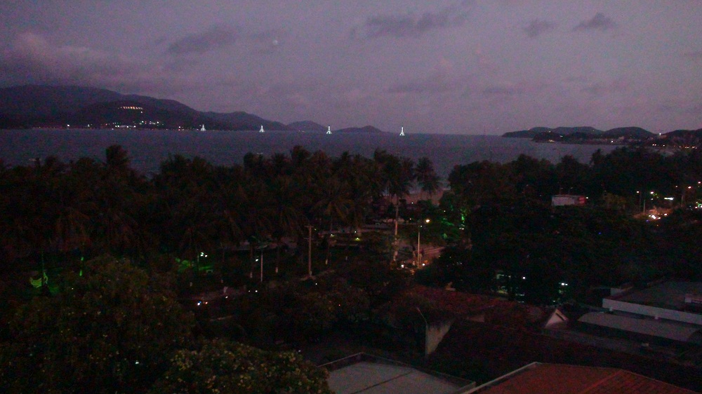 Вид с нашего балкона. Впереди огоньки над морем - это дорога на Винперл, а на горе светитнся надпись - это и есть Винперл