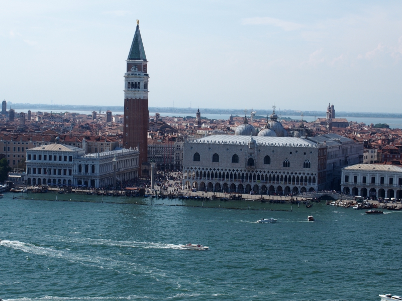 На следующий день с утра отправились во Дворец дожей (Палаццо Дукале). Вложение: Вид на площадь Сан-Марко со стороны лагуны; здание с аркадой - Дворец Дожей.