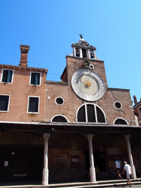 Вложение: Вначале поехали к мосту Риальто. Полюбовались, зашли на одноименный рынок. Риальто- старейший рынок в Европе, существовавший еще в средние века. Торговля велась здесь с двенадцатого века. Цены на рынке немного выше, чем в городских магазинах, но качество и ассортимент товаров отличный. Кстати, цены на продукты на рынке указываются за полкило. Завтракали мы еще в самолете, кушать хотелось, поэтому купили на рынке клубники с нереальным запахом - как сейчас с грядки; крупной, как ранетки, черешни; раннего инжира. Здесь же, на рыночной площади, в питьевом фонтанчике помыли фрукты и устроили себе отличный пикник на ступеньках церкви San Giacomo di Rialto (кстати, самая старая церковь в городе). В Венеции это нормально – можно расположиться где угодно, но, конечно, принято убрать за собой весь мусор. Вложение: Церковь San Giacomo di Rialto