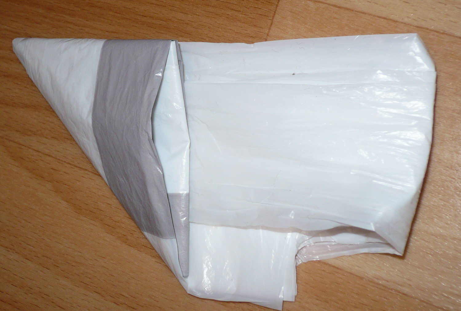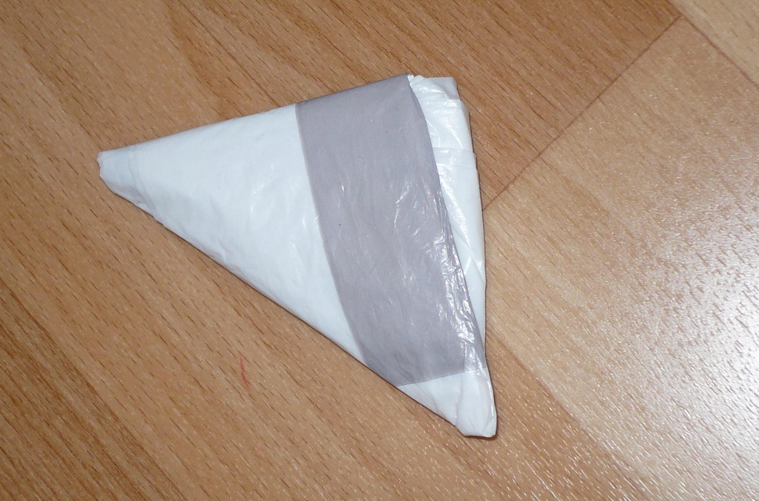 Дно пакета загибаем по диагонали(получится треугольник)