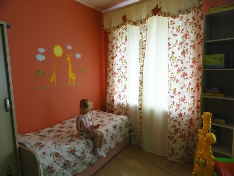 на момент заказа, я, скажем так, точно не знала, чего хочу, было единственное требование: что-нибудь пестренькое, чтобы разбавить однотонные стены, но не явно-детское, т.к. ребенок растет быстро, и через пару лет мишки-зайчики будут уже не к месту. на окна я планировала рулонные жалюзи, так что функция светозащиты для штор не предполагалась. пришла дизайнер, посмотрела интерьер, сделала замеры. через пару дней предложила пару вариантов- нарисованные карандашом; в процессе обсуждений родилась еще пара, которые она тут же нарисовала и отдала на руки. обычно эскизы до заказа не отдают, выбирать приходиться на месте, а мы выбирали дома. когда я увидела предложенную ткань, все остальное мне стало неважно сверху- штора, снизу- покрывала на кровати.Вложение: ткань на портьеры плотная, типа сатина, только не гладкая, 100% х/б, дорогая 1500руб/м и только на заказ- ждали 2 недели. тюль 300руб/м.и вот что получилось в итоге Вложение: качество ткани и работы выше всяких похвал швы ровнехонькие, складки по величине одинаковые, тюль стянута по длине гардины равномерно, как по линейке! Вложение: Вложение: очень приятным сюрпризом оказалось, что шторы настолько плотные, что полностью выполняют функцию светозащиты! Вложение: окна выходят на южную сторону, но даже когда днем дочка спит, задергиваем шторы, и дополнительного затемнения не требуется. от рулонных штор на окна отказались ![]() единственный минус: ламбрекены отдали не присобраными, пришлось делать это самим, а вручную так ровно, как тюль, естественно, не получилось. итог: цена вопроса- 18750 за все: ткань, работа, выезд дизайнера. сроки- 2 недели ожидание ткани, 1 неделя работа. оплата- предоплата (размер по договоренности) на момент заказа, окончательный рассчет при получении.