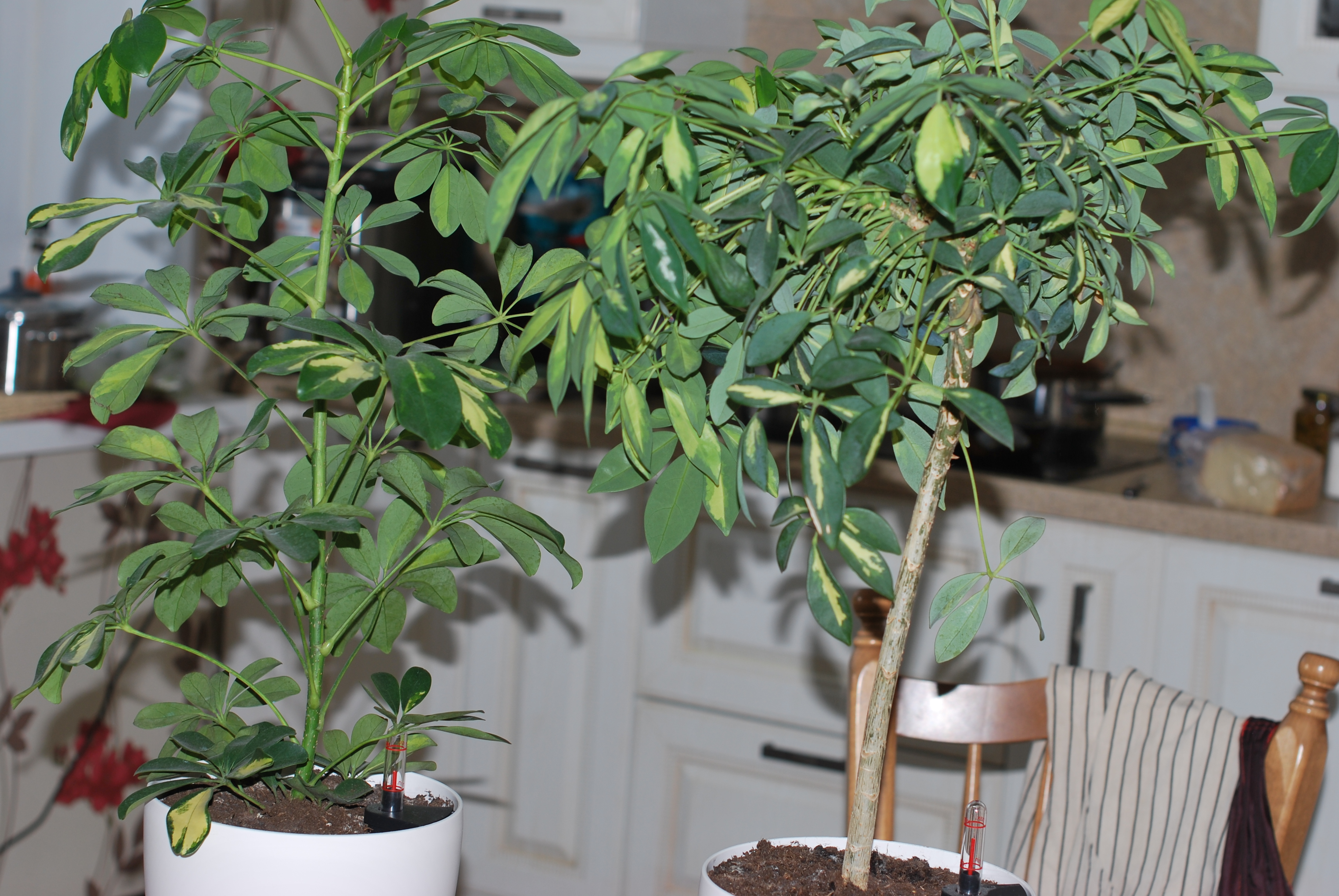 Наташа, хэлп! Есть две шеффлеры. Они разного вида, но я просто рядом - для сравнения - показываю. Одна - пестролистная - уже достаточно долго у меня живет. Но она имела изначально другой облик. Примерно, как у рядом стоящей шеффлеры. И растение сформировало крону, как у дерева. Там все очень загущено. Я ждала, думала, может, растение самостоятельно отрегулирует свой рост. Но вижу, что дальше - хуже. Листья новые прут, мешают друг другу. Там наверху - прямо пучок сформировался. Мне жалко растение. Что можно сделать? Обрезку своеобразную провести? Заломать ил что? ![]() Вложение: Вложение: