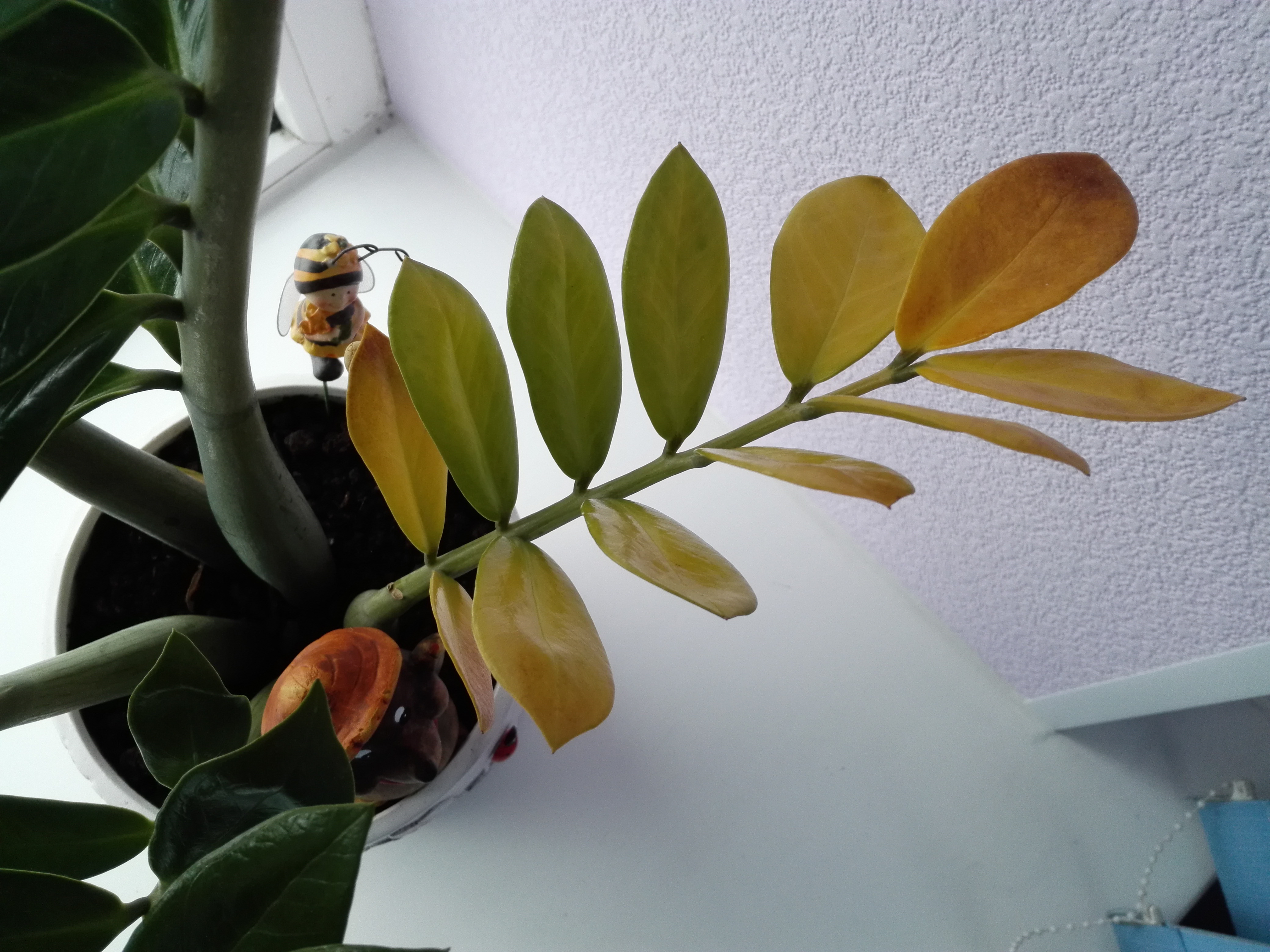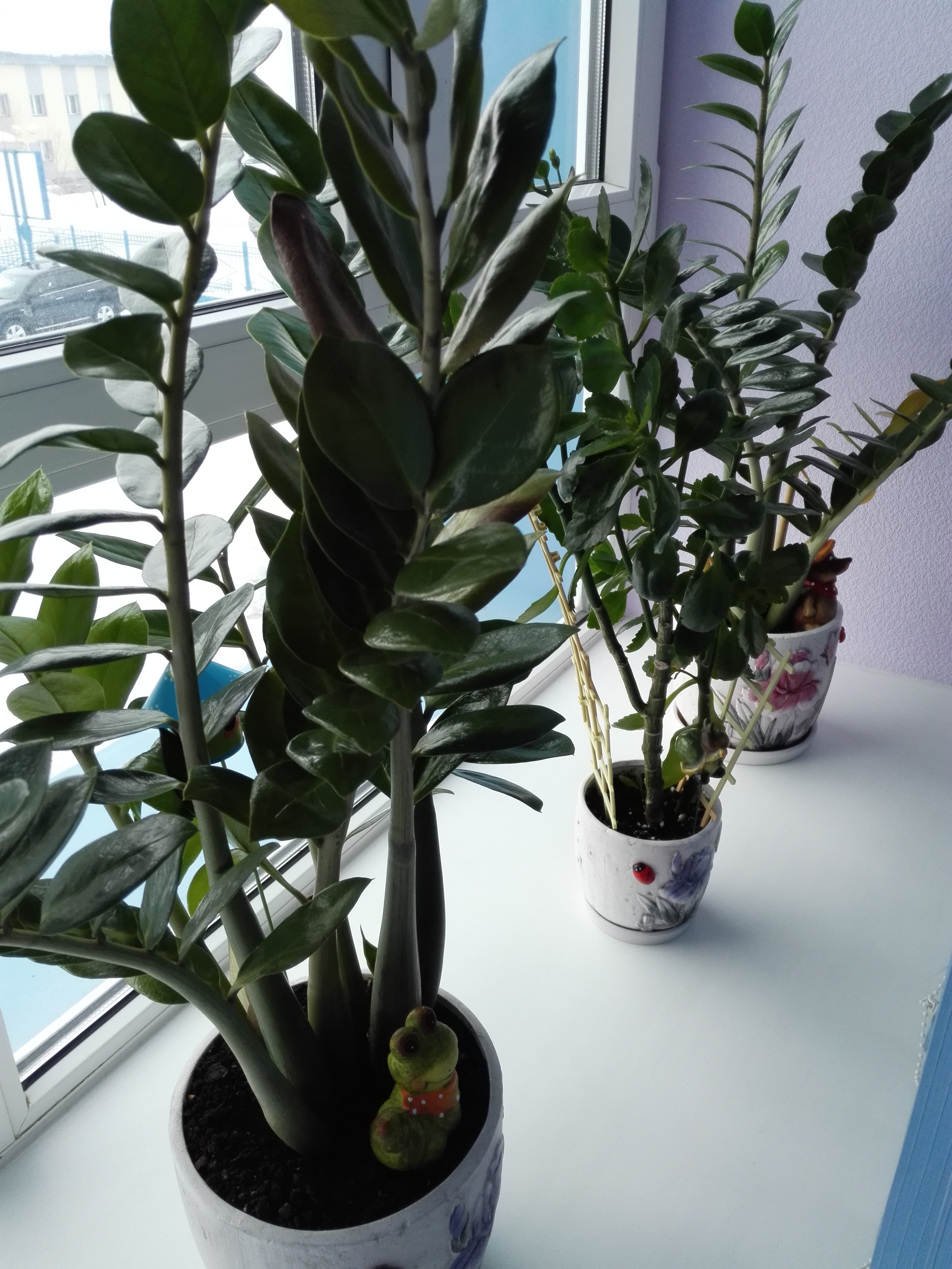 Мне кажется просто тесновато вашему растению. У замиокулькаса картошины ратут вширь. И пластмассовые горшки , иногда прям деформируются и треескаются. Ему нужны плошки пошире. Т е золотое правило между корнем и стенкой минимум 3- 4 см. ◊ *** |