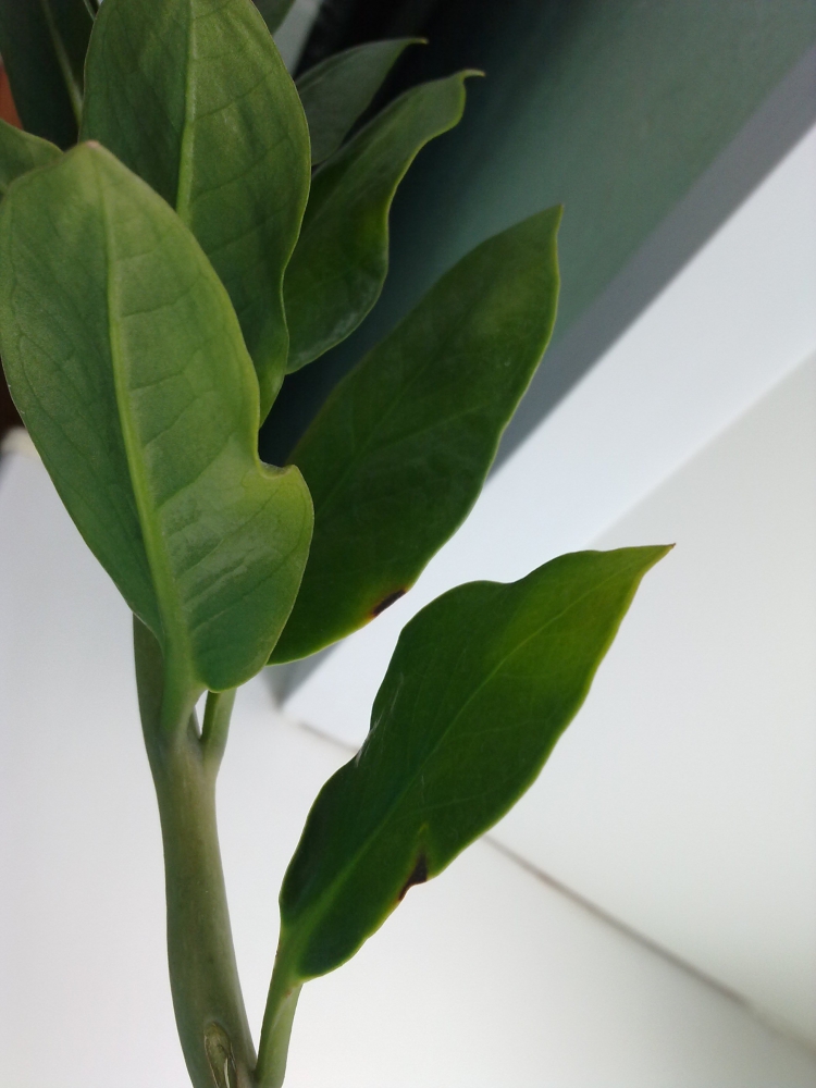 Девочки, подскажите, что с моим замиокулькасом. Я его вчера утром полила, с последнего полива прошло три недели. Стоит на подоконнике, окно приоткрыто было. Растюху раскопала, грунт чуть влажный, гнили вроде нет, живности тоже не увидела
