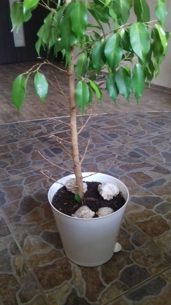 И ещё вопросник. Муж зимой заморозил фикус бенжамино. Теперь листья очень плохо растут и нижние ветки у него стоят голые. Может их обрезать?