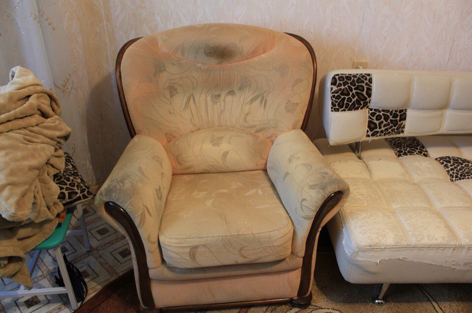 Я точно размеры не знаю, диван угловой, объемный. 1 сторона примерно 1,5 метра, 2 сторона чуть больше 2 метров. Выдвижной и с ящиками. И кресло тоже раскладывается. Ткань не дешевая, под гобелен.