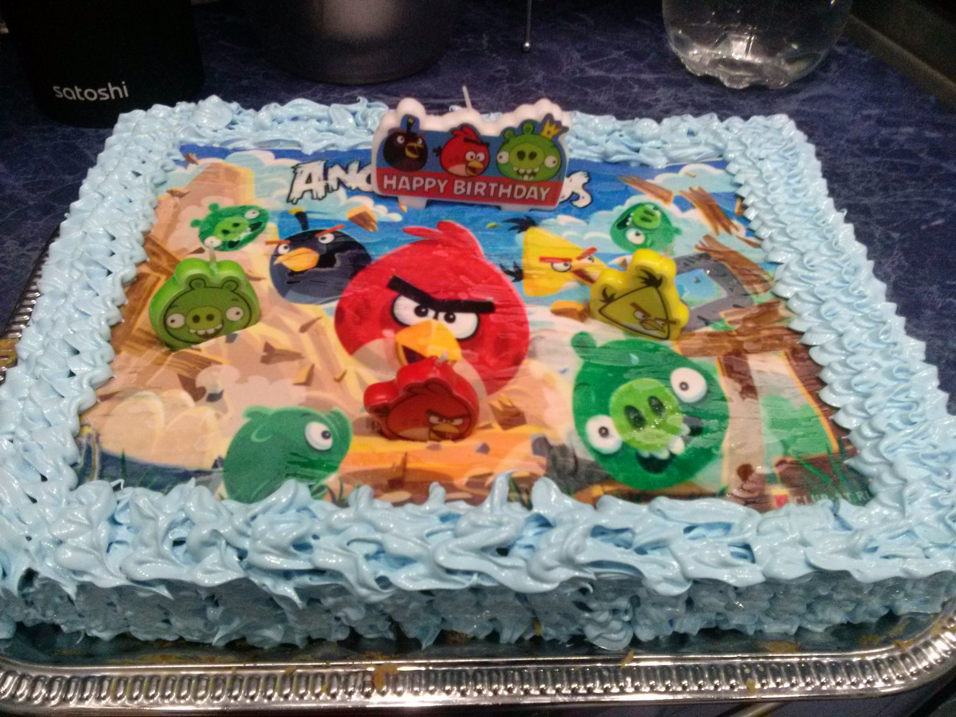 Девочки вот мой первый тортик с сахарной картинкой сыночку на день рождения, тортик медовый, крем сгущенка вареная со сметаной, на крем сыпала грецкие орешки и порезанный чернослив через один корж, сверху картинку пыталась покрыть заливкой желатиновой, но картинка размазывалась. В красивом подходе купила подходящие свечи и тортик готов! Кстати, рецепт медовика брала отсюда , по рецепту "не подарок", очень понравился тортик!