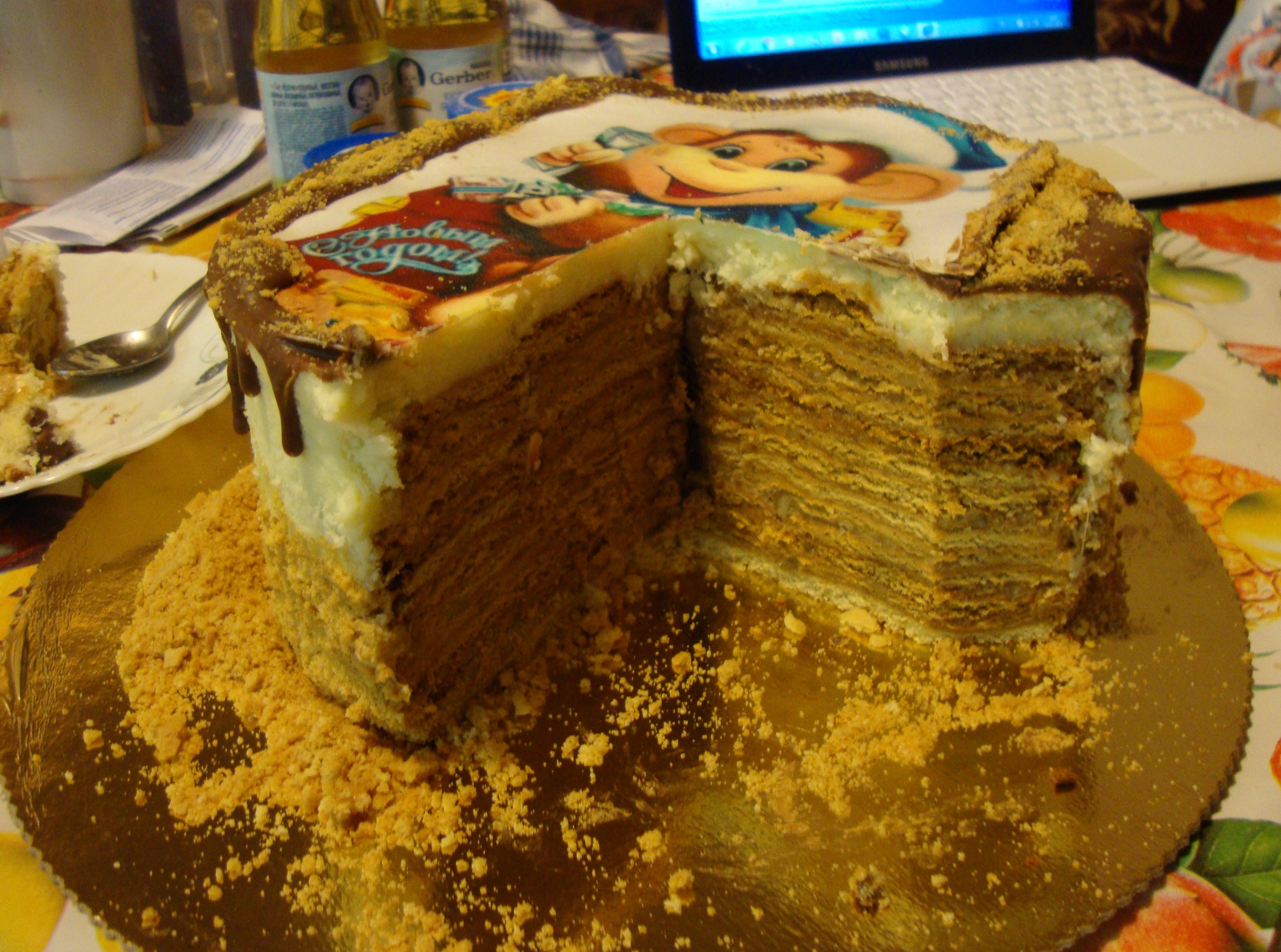 malvina писал(а): : 16.01.2016 22:44 Девочки вот мой первый тортик с сахарной картинкой сыночку на день рождения, тортик медовый, крем сгущенка вареная со сметаной, на крем сыпала грецкие орешки и порезанный чернослив через один корж, сверху картинку пыталась покрыть заливкой желатиновой, но картинка размазывалась. В красивом подходе купила подходящие свечи и тортик готов! Кстати, рецепт медовика брала отсюда , по рецепту "не подарок", очень понравился тортик! У вас картинка размазалась,так как сироп был водянистым,не доварили его...или сахара маловато,сироп должен быть густым ,по цвету коричневеть -значит готов и только потом лью желатин туда и этим покрывают картинку,покрыв её самодельными гелем она становится яркой. Если теория эволюции верна, то почему у матерей только две руки? Милтон Бёрл Безумно люблю своих мальчишек!!!! Смотрю на него и умираю от счастья... |