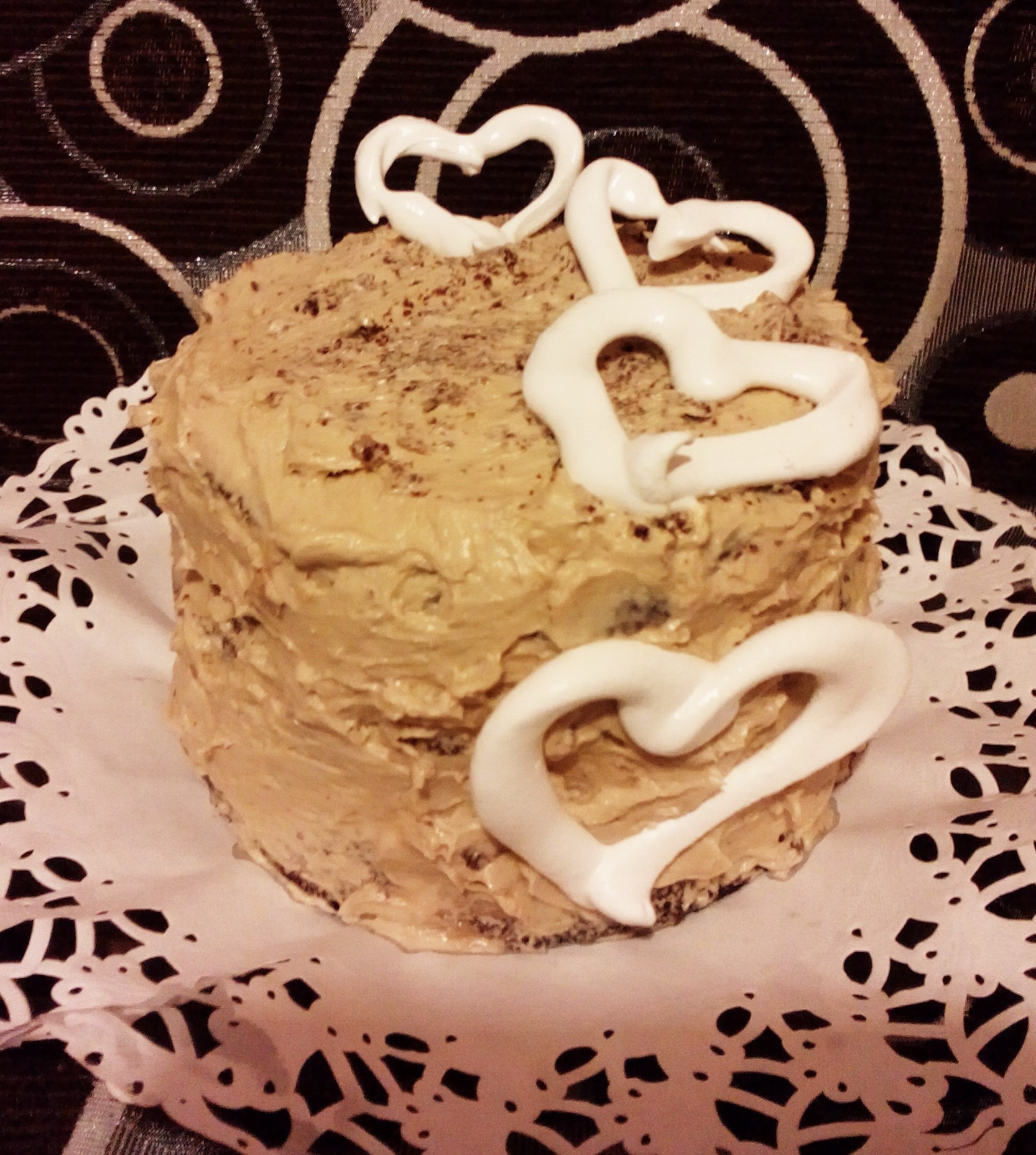 Внутри шоколад на кипятке с грецкими орехами. Крем масло/ сгущенка+ вареный молотый кофе Сердечки - швейцарская меренга (белок/ сахарная пудра/ лимонная кислота). Сушила пару дней. Получились достаточно твердые.