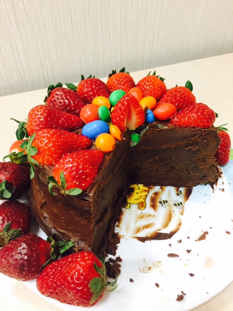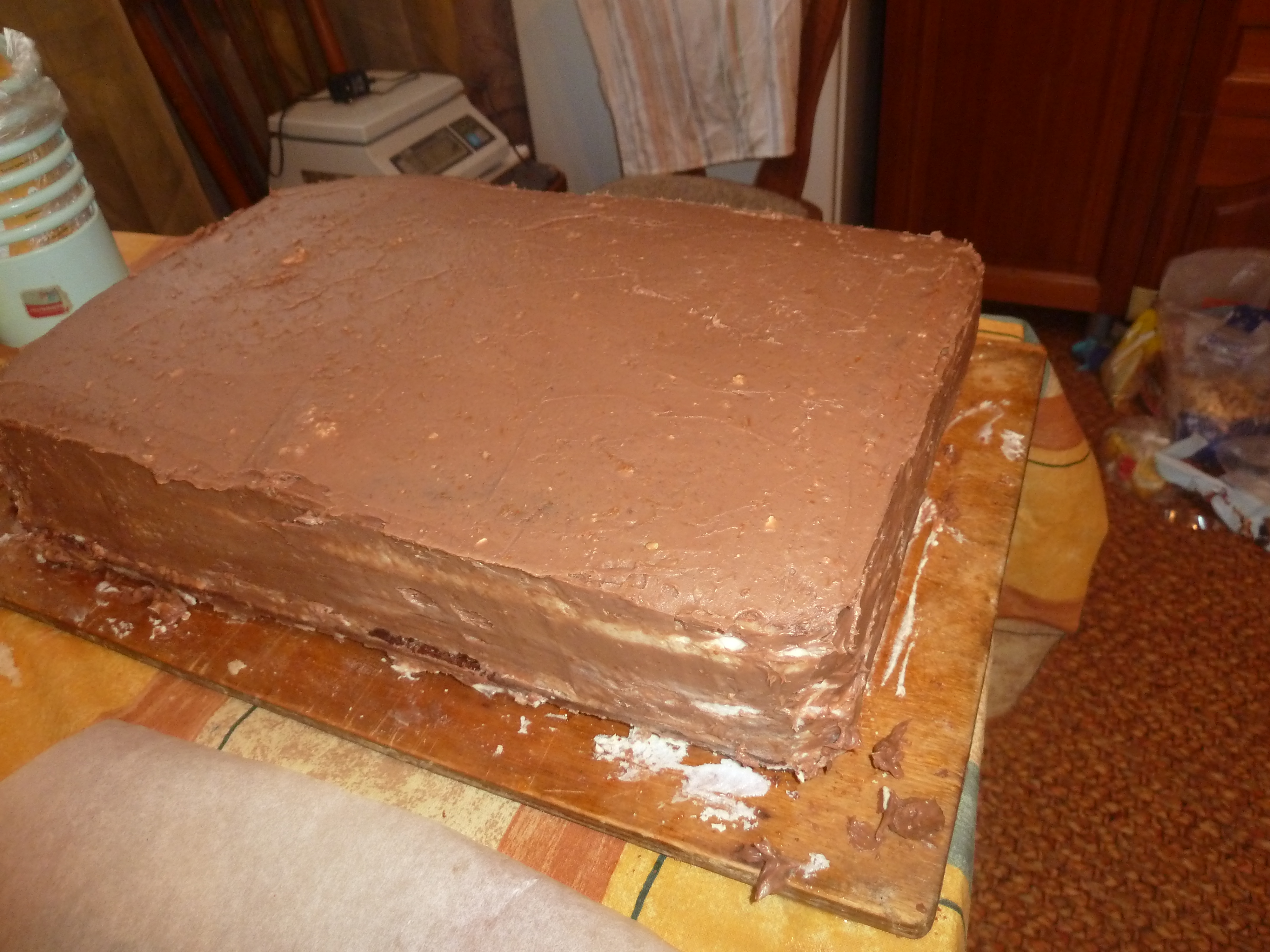 торт был на день рождения мамы.Творчество совместное с ней Было 4 коржа. 2 шоколадных, 2 ореховых. фото в разрезе нет,к сожалению Развернуть/свернутьВложение: Это уже второй корж. ореховый. испекла 1, а потом разрезала вдоль