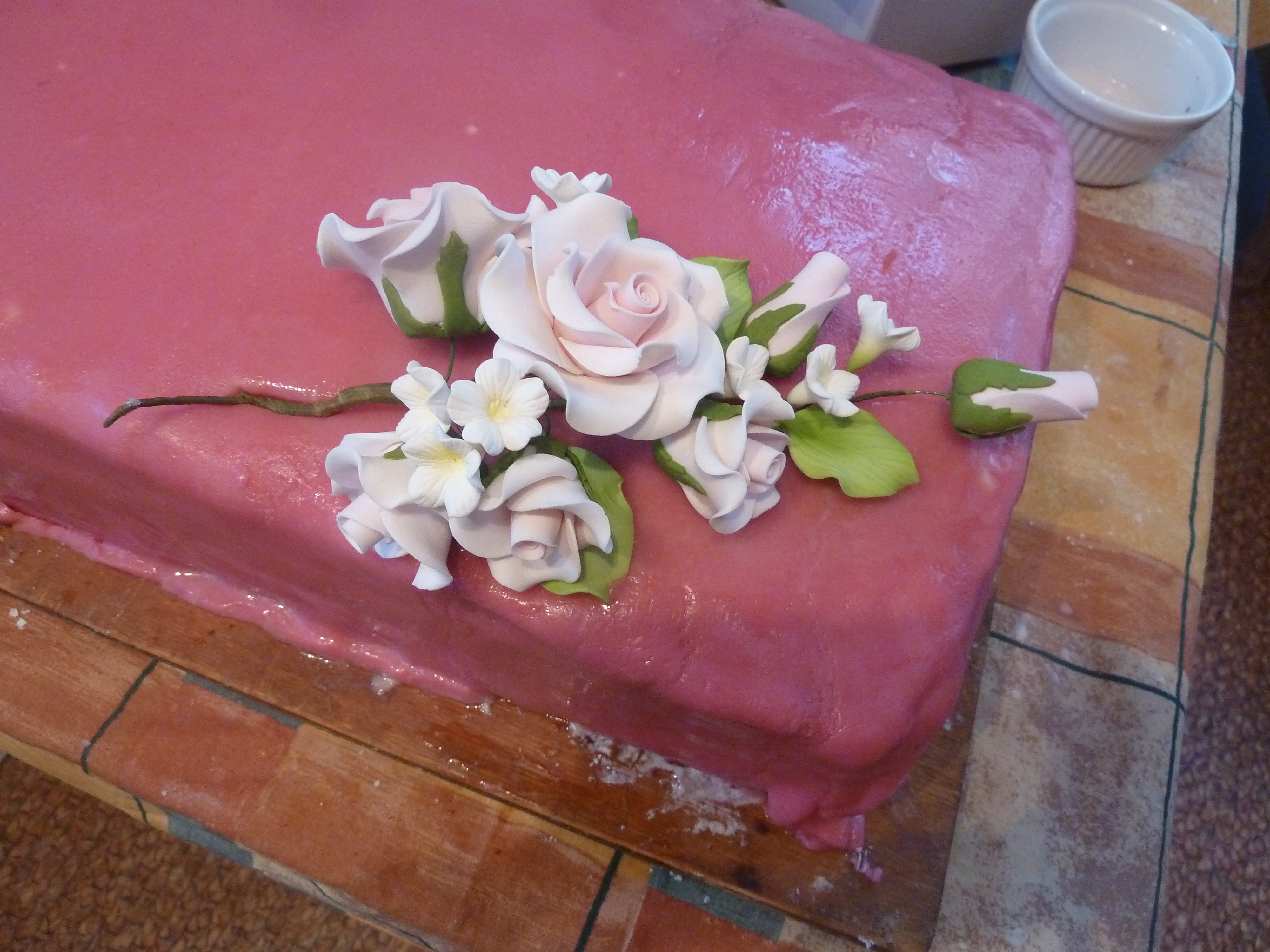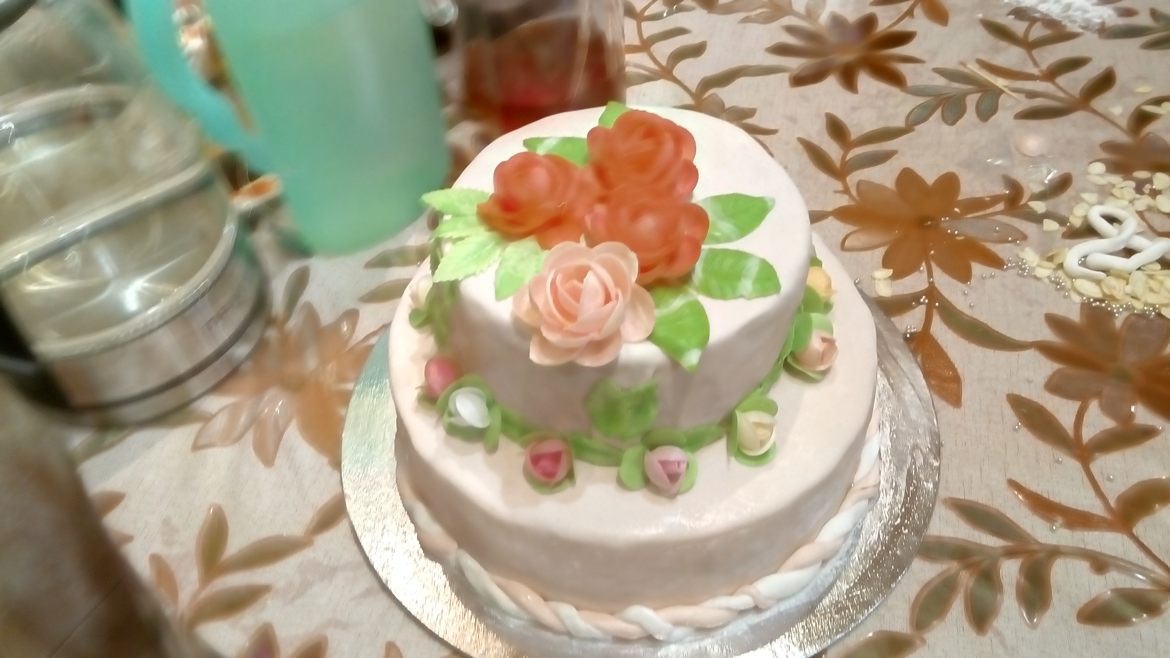 Вложение: Торт выровняла, намазала, как вы учили, водкой) и вот такие цветочки были готовые, вафельные