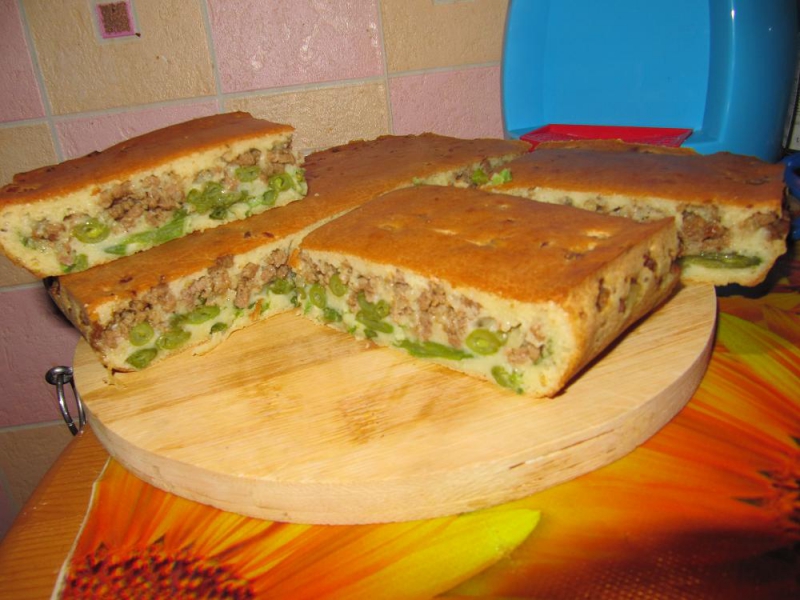 решила по-быстрому испечь пирог )) начинка была отварная стручковая фасолька и фарш жареный с лучком и чесночком (посолить) количество фасоли на глаз брала...стакан-полтора наверное, а фарша было 450 гр + 2 хороших таких луковицы и пару зубчиков чесночкапока начинка жарилась-варилась, замесила тесто : 3 больших яйца + полчайной ложки соды со стаканом кефира + 3 щедрых столовых ложки майонеза + соль + мука 1,5 - 2 стакана ...тесто должно быть как густая сметана...тягучее такое)) смазала силиконовую форму (у меня силиконовая 22 на 22) несколькими каплями оливкового масла (на всякий случай), вылила половину теста, выложила вареную фасольку, посыпала немножко ламбером и свежим укропчиком для вкуса потом выложила жареный фарш и сверху обмазала оставшимся тестом)))) и в разогретую до 200 градусов духовку.сначала пекла 15 мин на 200 градусах, убавила до 170 и пекла еще 15 минут, потом выключила духовку и оставила еще на 15 минут и всёёё))) кушать лучше чуть теплым или холодным очень вкусно получилось ![]() Вложение: Вложение: |