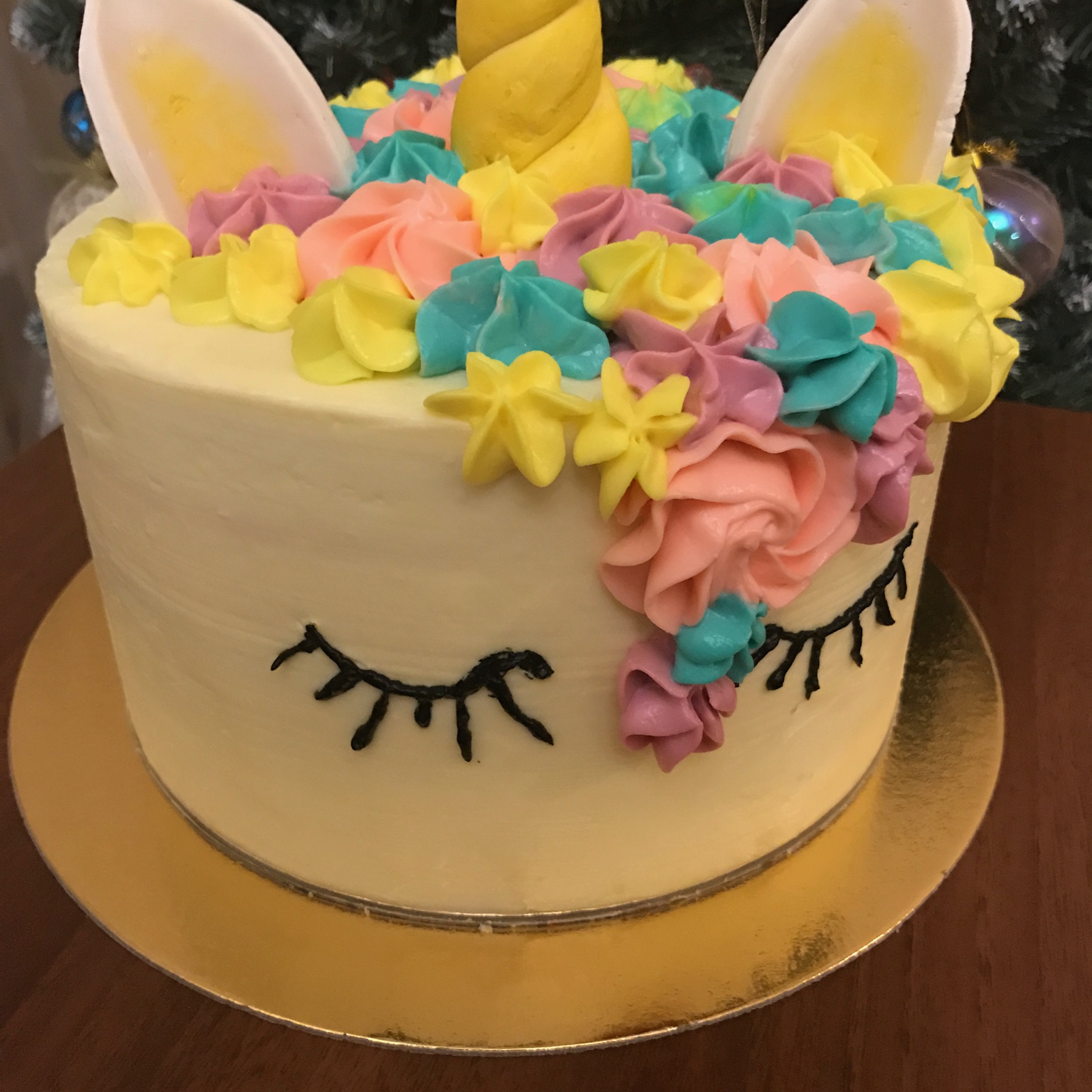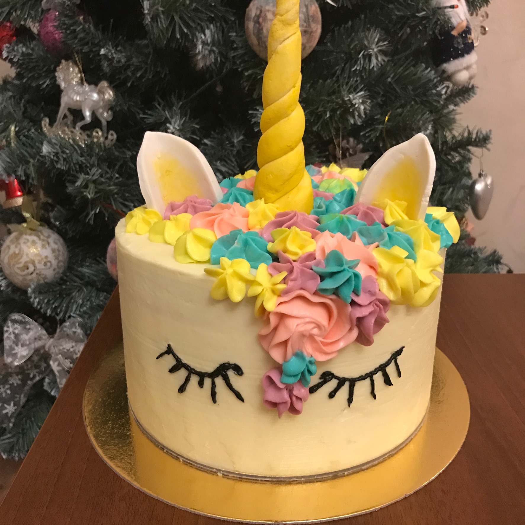 Радужный торт - единорог. Бисквит джоконда, крем- чиз на сливках