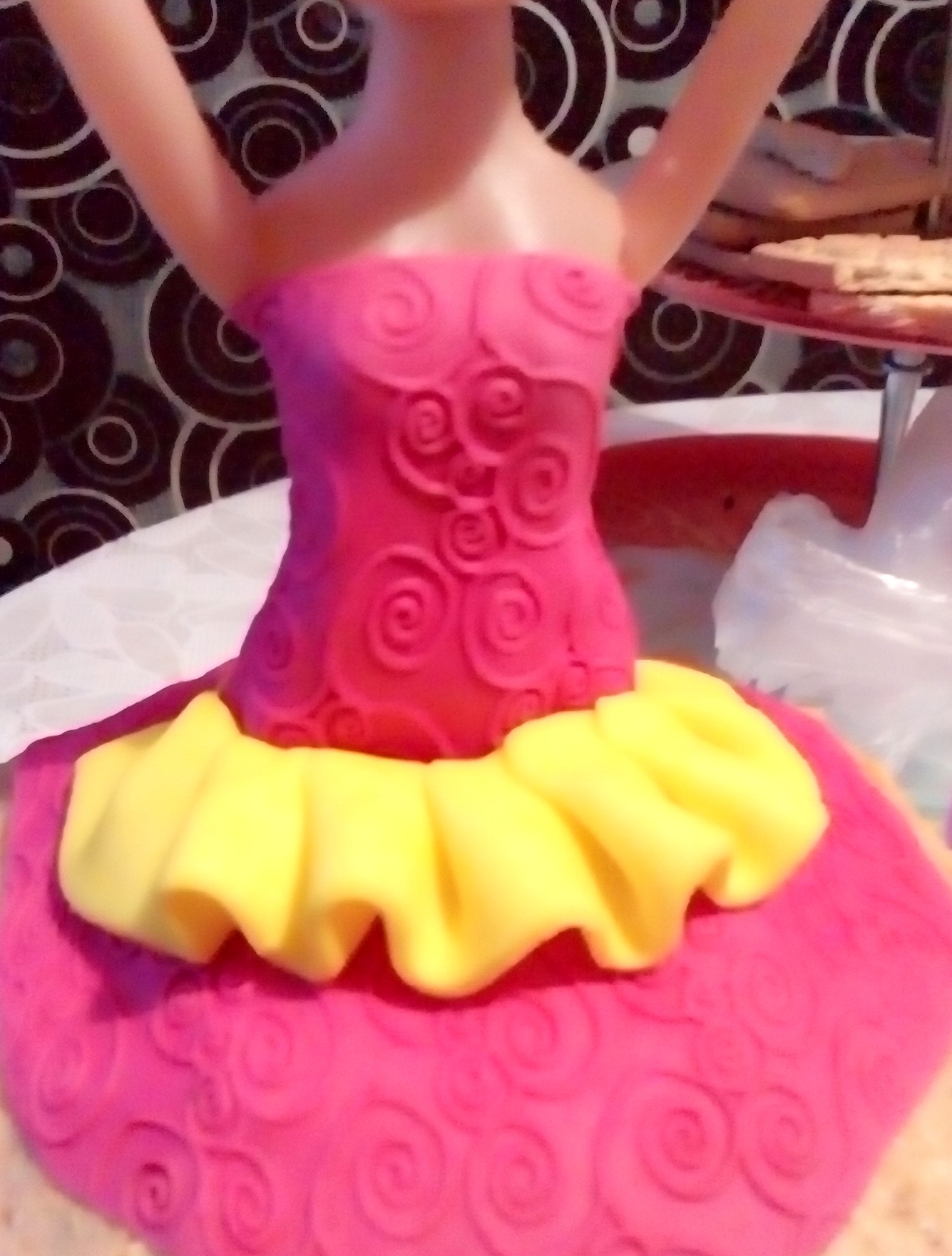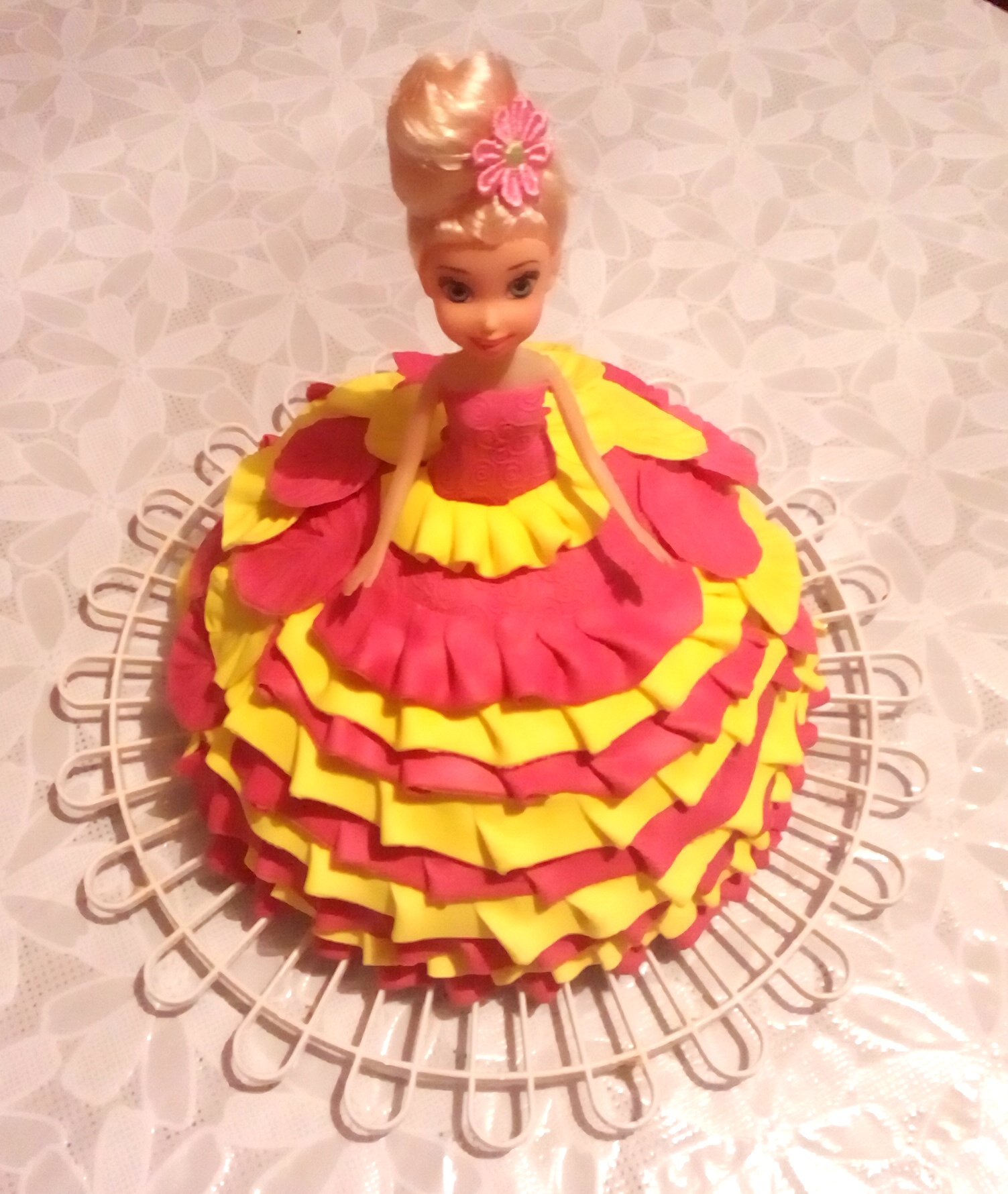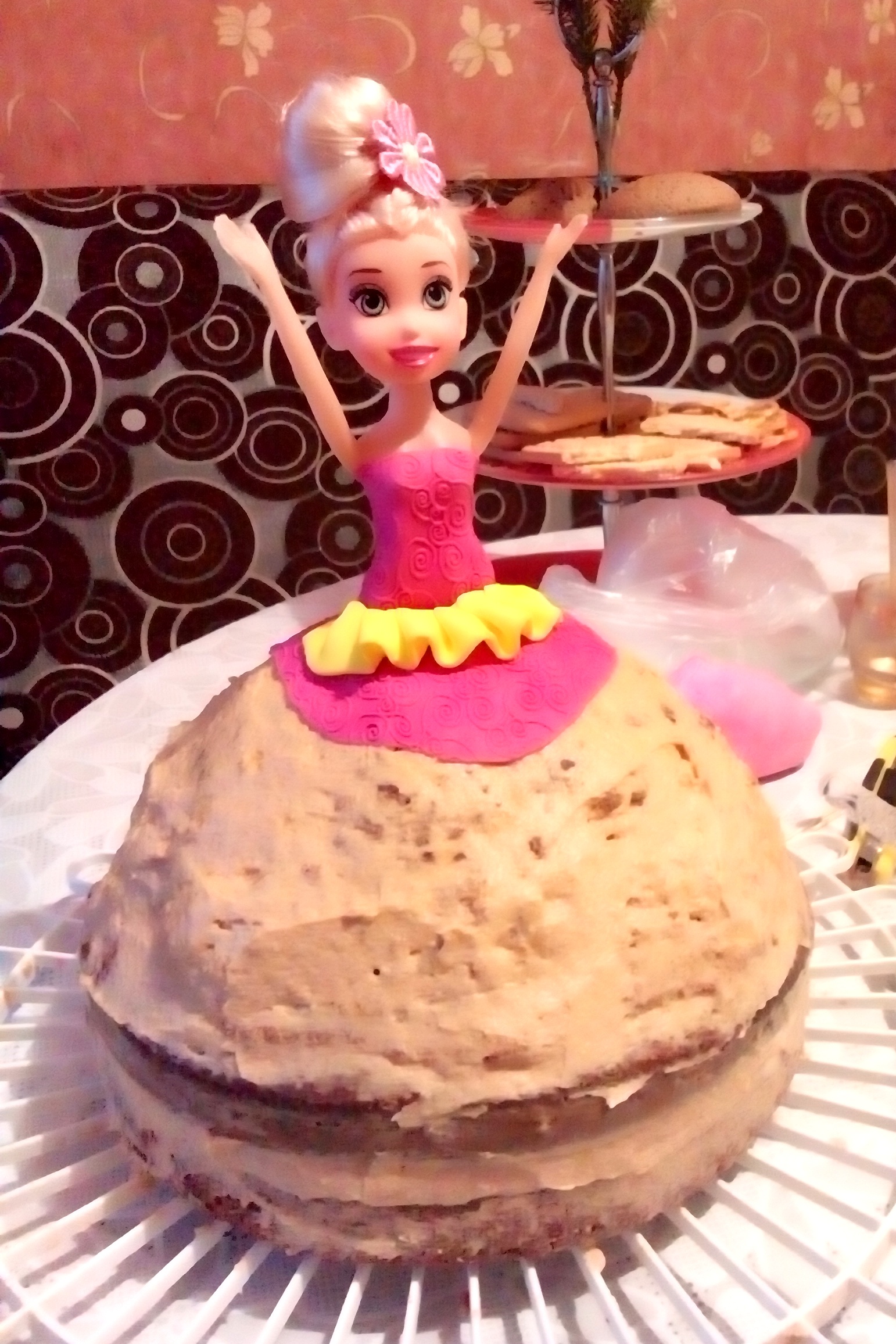 Внутри "Колибри", крем с вареной сгущенкой Чем нравятся куклы- выравнивать торт не надо:-) Текстуру делала специальной скалкой Остальное по фото видно:-)