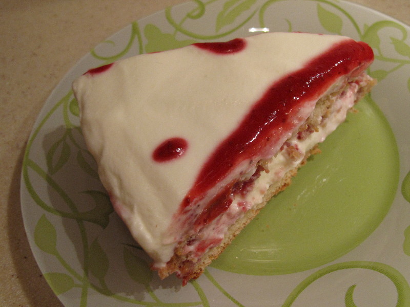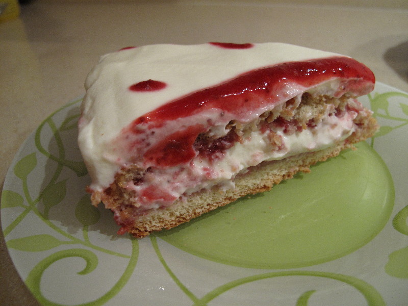 Совершенно не разбираясь в сырах, я прямо с магазина терроризировала Женю по телефону по поводу того, какой нужен сыр, в итоге взяла Филадельфию и уже подходя к кассе вовремя обнаружила, что он с травами, в итоге пришлось вернуться и взять что-нибудь другое. Названия других сыров мне ни о чем не говорили , взяла Маскарпоне, потомучто название знакомое . С Маскарпоне я не стала экспериментировать и делать чизкейк, тем более у меня не было двух форм для выпекания, как написано в рецепте. Но тортик мне все же хотелось сделать, в итоге я объединила два рецепта девочек: Бисквит White Mouse писал(а): Можно сделать бисквит на 5 яиц (всё так же, кроме яблок). Готовый бисквит выкладываем из формы и режем ниткой или спец. ножом на 2 коржа. Коржи мажем половиной любимого крема, складываем друг на друга, остальным кремом обмазываем бока. Украшаем фруктами или чем душе угодно. Крем из рецепта Тирамису, только Маскарпоне всю банку выложила - 500гр. Оксанчик писал(а): 400 г сливок 33% 250 г Маскарпоне (покупала в Премьере на Ленина - 189 р.) 3-4 ст.л. сахара Пропитку для бисквита сделала из замороженной клубники, 3-4 ст. ложки сахара, немного воды, проварила до густоты, сделала блендером подобие джема. Вот что получилось, главное мужу понравилось Спасибо всем за рецепты!