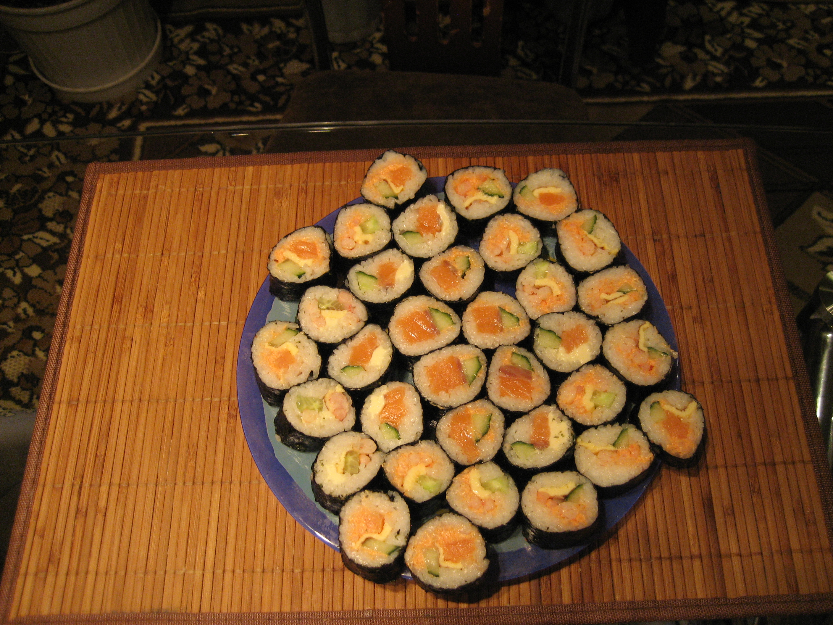 А мне кажется их легче делать. Которые нори наружу у меня постоянно калеческие, а рисом наружу-симпатяшные такие. вот доберусь до готовки ролл в субботу, сфоткаю обязательно. У меня конечно сервировки японской никакой, но с пивом и так нормально Где мне палочек купить? |