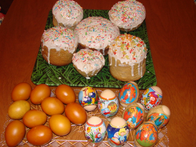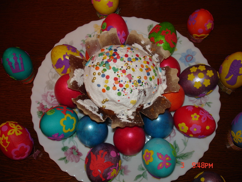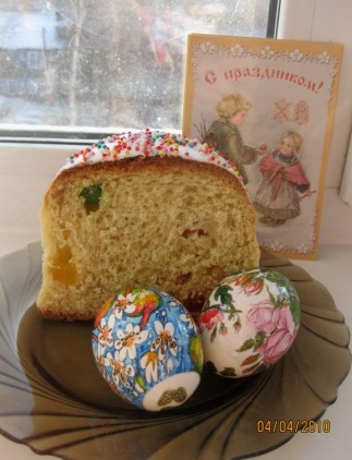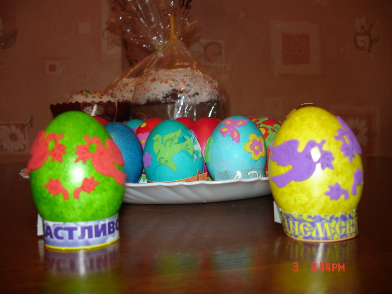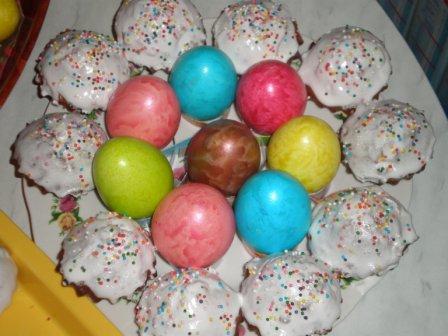 А у меня вот такие нынче яйца получились. Куличи покупала.