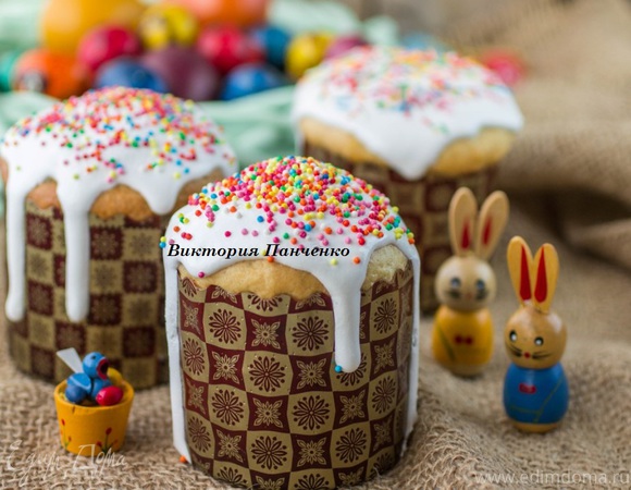 Получилось 32 штуки Понравилось тем, что на ночь все ингридиенты заложила...и спааать. Завтра вечером тоже поставлю, но вполовину.1 л топленого молока 1 кг сахара 500 гр масла слив. 10 яиц 3 желтка 150 гр свежих дрожжей. Яйца слегка взбить, масло порезать кусочками, смешать все продукты с теплым молоком и оставить в теплом месте на 8-12 часов (делали на ночь) Утром всыпали 1 ч.л. соли 200 гр запаренного изюма 2 пакетика ванильного сахара 2 ст л коньяка!!! Муки ушло 2,4 кг (по рецепту 2,5) Еще потерла кожуру апельсина для аромата (но это усовершенствование )Вымешивала мягкое, вязкое тесто макая руки в подсолнечное масло. Потом на расстойку на час-полтора, пока не увеличится вдвое. А дальше как всегда - заполнять 1/3 формочек, подождать когда поднимется до верха и выпекать при тм 180 гр. (примерно 25-30 мин получалось) Когда остыли - сделали глазурь.