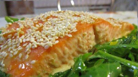 форель - 500г соевый соус 2 ст.л горчица 2 ст.л апельсин 1 шт. апельсиновый джем 2 ст.л кориандр молотый 0.5 ч.л кунжут 20 г Делаем маринад. Выжимаем сок из очищенного апельсина, добавляем соевый соус, горчицу, апельсиновый джем и кориандр. Духовку разогреваем до 180 градусов. Форель нарезаем порционными кусками, выкладываем в форму заливаем маринадом. Оставляем на 30 минут, посыпаем кунжутом и запекаем примерно 20 минут. Подавать с салатом из свежих овощей. Рецепт проверенный. Готовлю так часто. Муж привередливый, не любит сочетание соленого и сладкого. Но эта рыбка очень нравится. Можно убрать джем будет практически не сладко. Я готовила и так и так. Без джема мне нравится больше. Мужу с джемом.