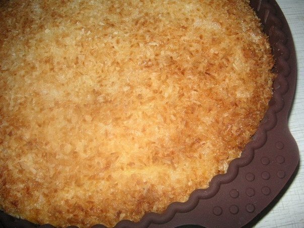 "Кокосовый пирог" Ингредиенты: Для теста: - 1 яйцо - 1 стакан кефира (простокваши, кислого молока) - 3/4 стакана сахара - 10 г разрыхлителя - 1,5 стакана муки Для начинки: - 3/4 стакана сахара - 100 г кокосовой стружки - 1 пакетик ванильного сахара. - 1 стакан 20% сливок Приготовление: 1. Ингредиенты для теста смешать и вылить в форму. 2. Для начинки смешать в сухой посуде 3/4 стакана сахара с 100 г кокосовой стружки и 1 пакетиком ванильного сахара. 3. Эту смесь равномерно распределить по всей поверхности теста. 4. Поставить в нагретую духовку и выпекать при t 180-200 около 25-30 минут (зависит от духовки (я выпекала45 мин)). Следите, чтобы не подгорела кокосовая стружка (минут через 10 с начала выпечки можно прикрыла пирог фольгой). 5. Готовый пирог горячим равномерно полить 1 стаканом 20% сливок 6. Пирог вкуснее в охлажденном виде! Фото не моё (с инета). У меня получилось также красиво))