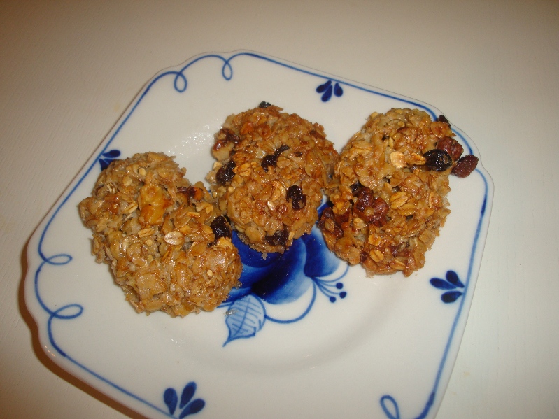 Вложение: Очень простой и мной любимый рецепт (легко запоминается, быстро готовится и вкусно). И главное- результат невозможно испортить, даже немного изменяя пропорции, температуру и время готовки. Печенье из овсяных хлопьев "Геркулес" 3 стакана "Геркулеса" (я предпочитаю марки "Пассим", можно и другой но не в мелкую крошку) 3 яйца 0,5 стакана растительного масла 0,5 стакана сахара 0,5 стакана изюма 0,5 стакана грецких орехов. Все смешать и дать постоять некоторое время для того, чтобы хлопья пропитались. Выкладывать на пергамент (иначе с противня сложно снять будет), формируя и утрамбовывая при помощи двух столовых ложек (по принципу снежколепа ). Выпекать минут 15-20 (все зависит от духовки и от температуры). Снимать с пергамента, пока не остыли, иначе бумага присохнет.Если по вкусу более сухие, то температура духовки должна быть выше, а если хочется помягче, то температуру можно делать поменьше. Кому как больше нравится. |