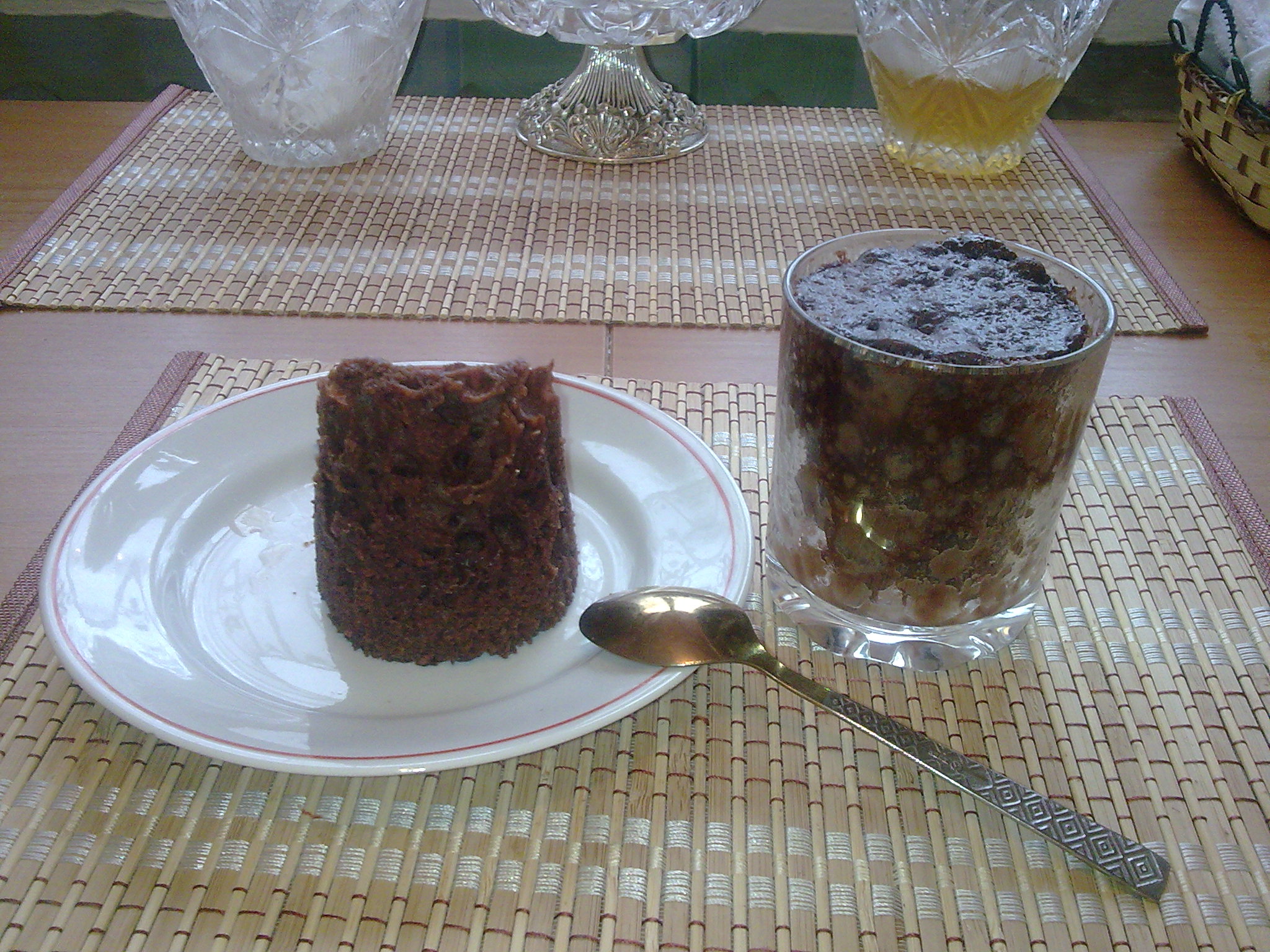 ."Брауни в микроволновке"-смешать 4 ст л муки,4 ст л сахара,1 яйцо,2 ст ложки какао,по 3 ст л молока и раст масла,кусочки поломанного шоколада.Смазать кружки или стаканы маслом,положить тесто и на 3 мин в микроволновку.Можно сразу в большой кружке смешать